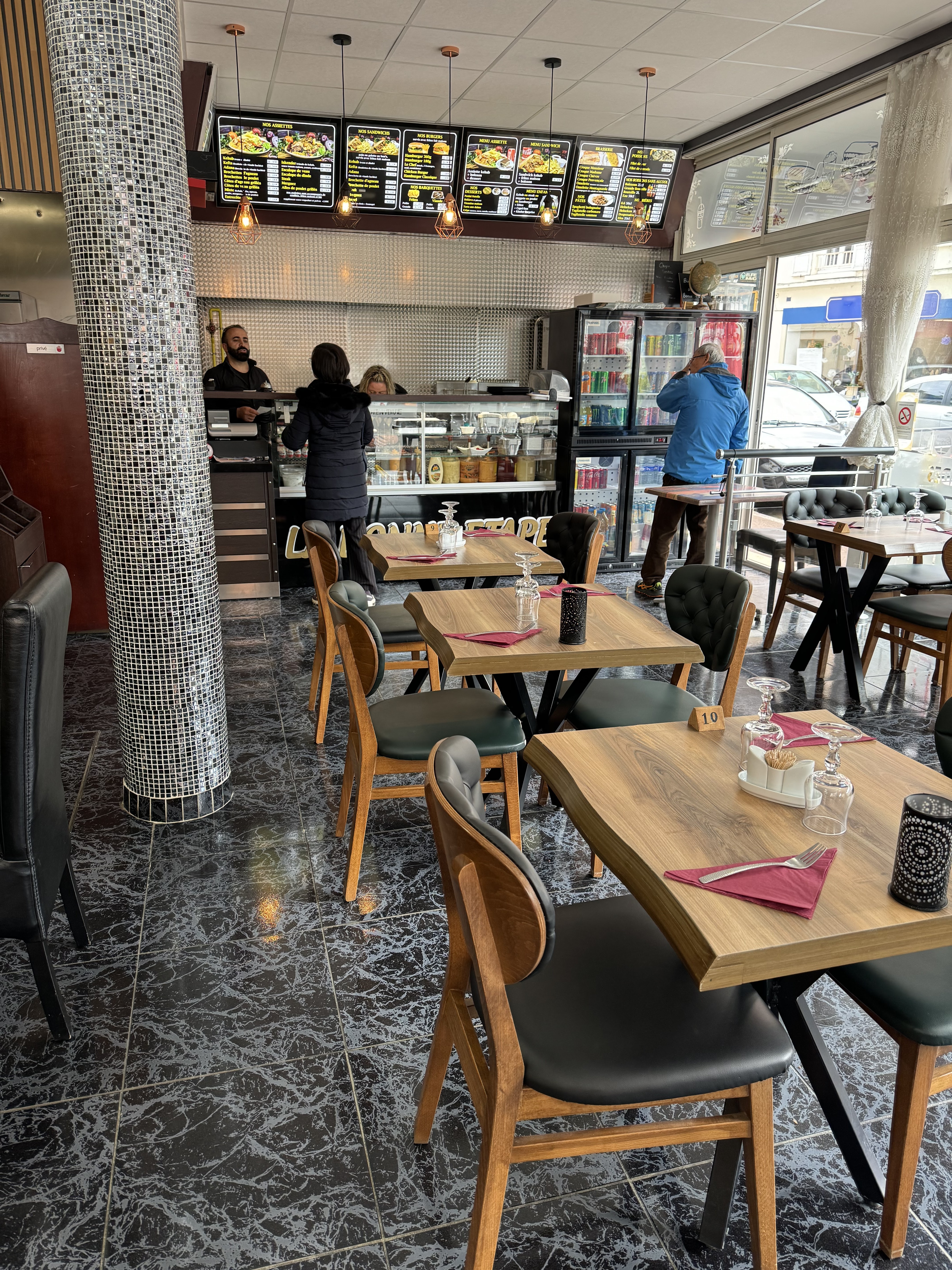 Cadre sympa pour tacos et kebab ! Petite terrasse service rapide idéal avant séance de ciné !