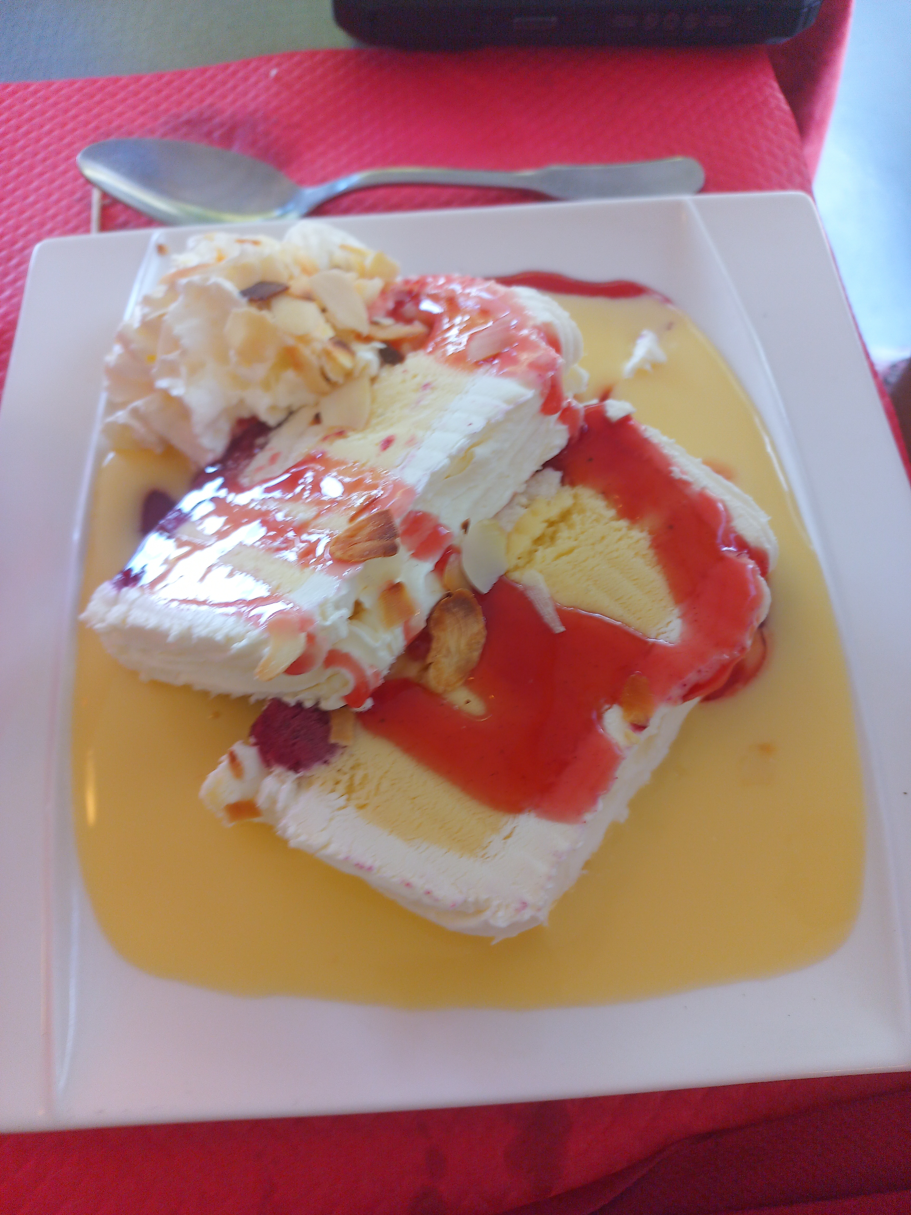 Du fait maison, non non. Ça commence par le mojito, un vrai mister cocktail affreux, pourtant ce n est pas compliqué à réaliser. Le menu est très copieux, des l entrée on se demande si ont aura assez de place Pour manger ses grenouilles, qui peuvent être un peu sèche, vu le monde elle sont précuites et réchauffer au four. Ce restaurant et l ennemis du peu, trop de chips a l appero trop de choses inutiles, de l apéritif au dessert . Mais bon les patrons veulent certainement trop faire plaisir. Ce n est pas un restaurant à fuir, mais les desserts sont catastrophiques. Vérifiez bien votre addition 😉32×4 n as jamais fait 113. Terrasse agréable.
