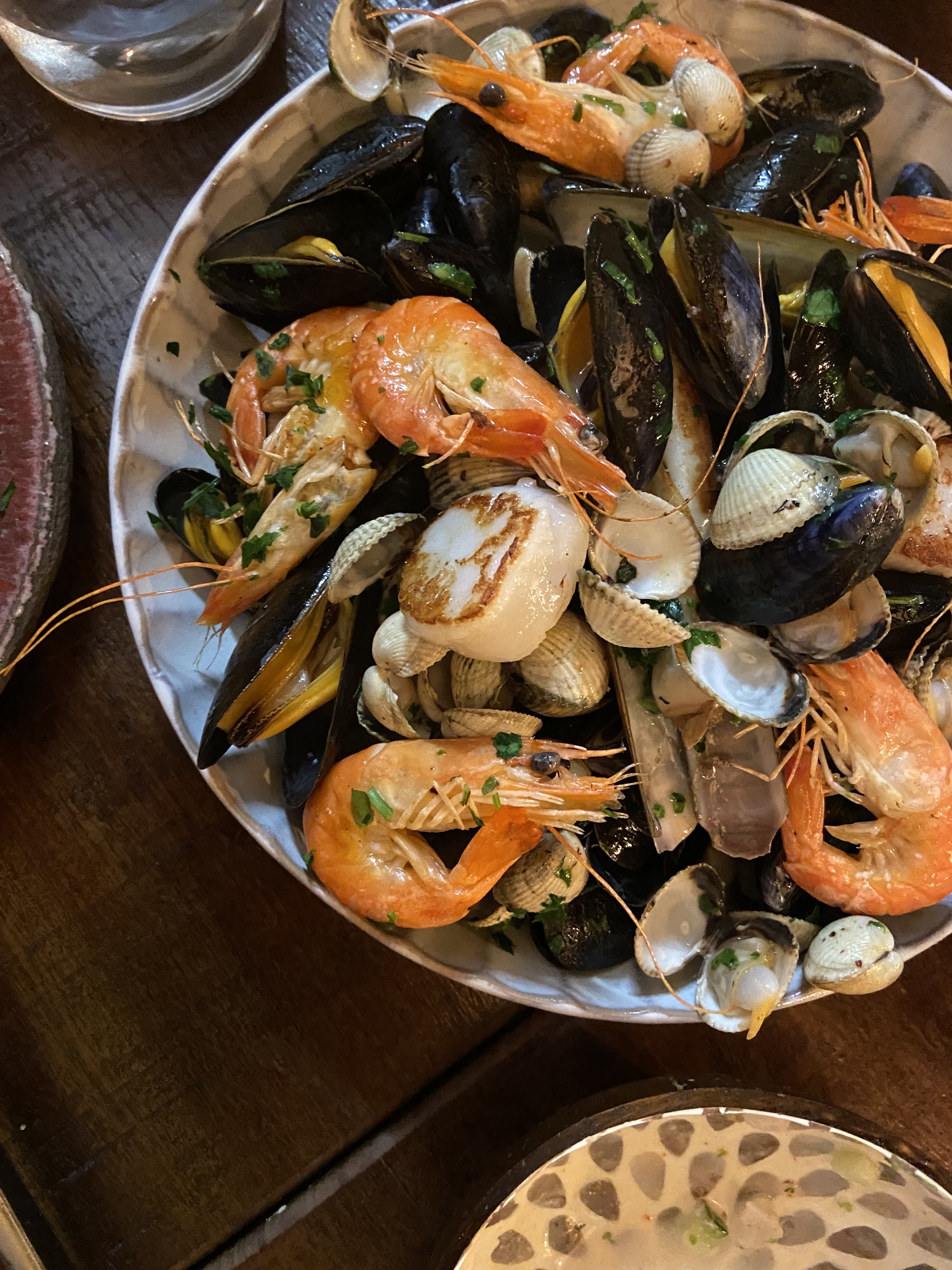 Certains des meilleurs fruits de mer que j'ai jamais mangés et apparemment tous cuisinés par un seul homme ! De délicieux couteaux, coquilles Saint-Jacques et moules recommandés par le chef lui-même, qui nous a offert un limoncello à la fin dans le plus pur style parisien 😊