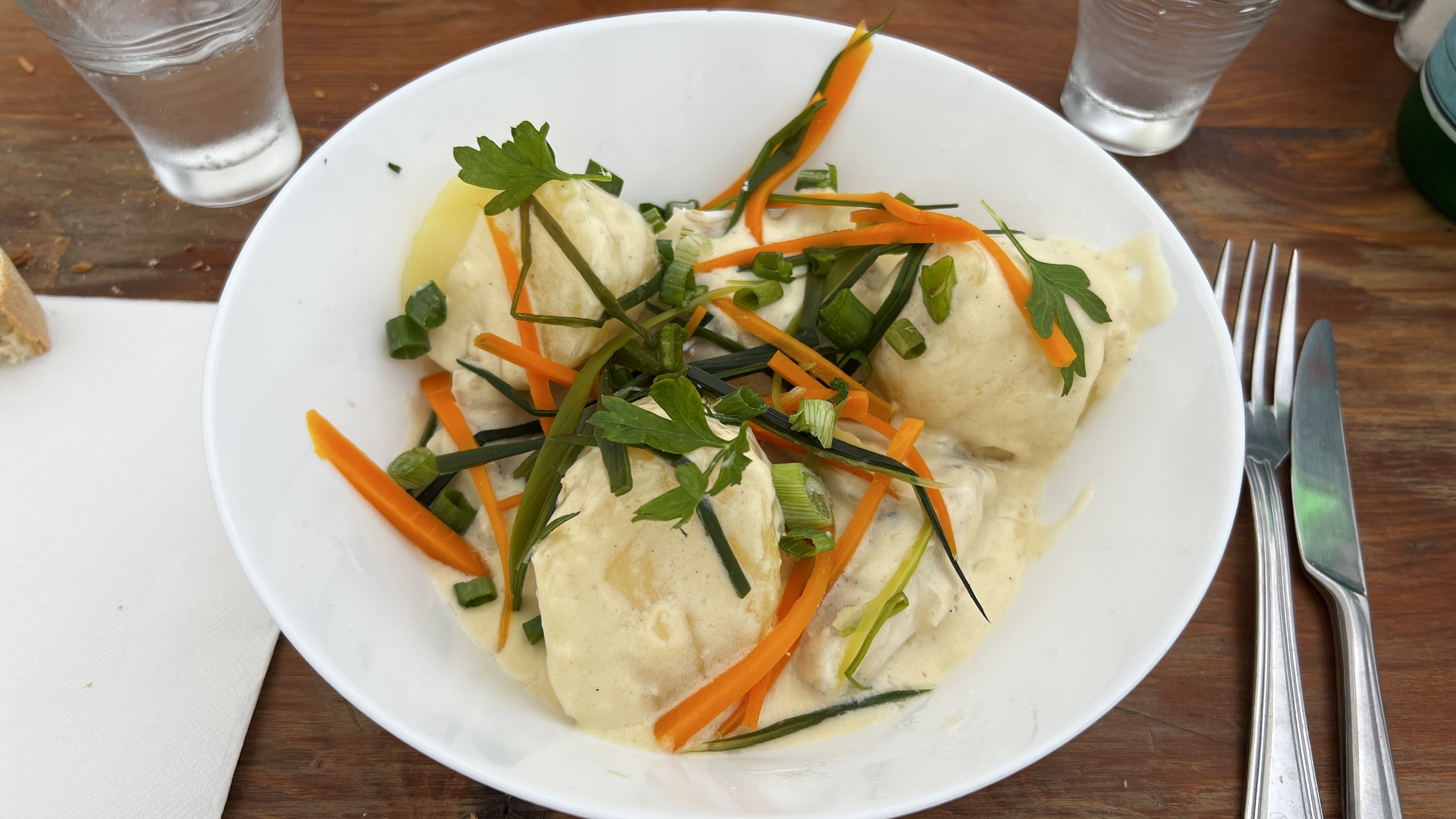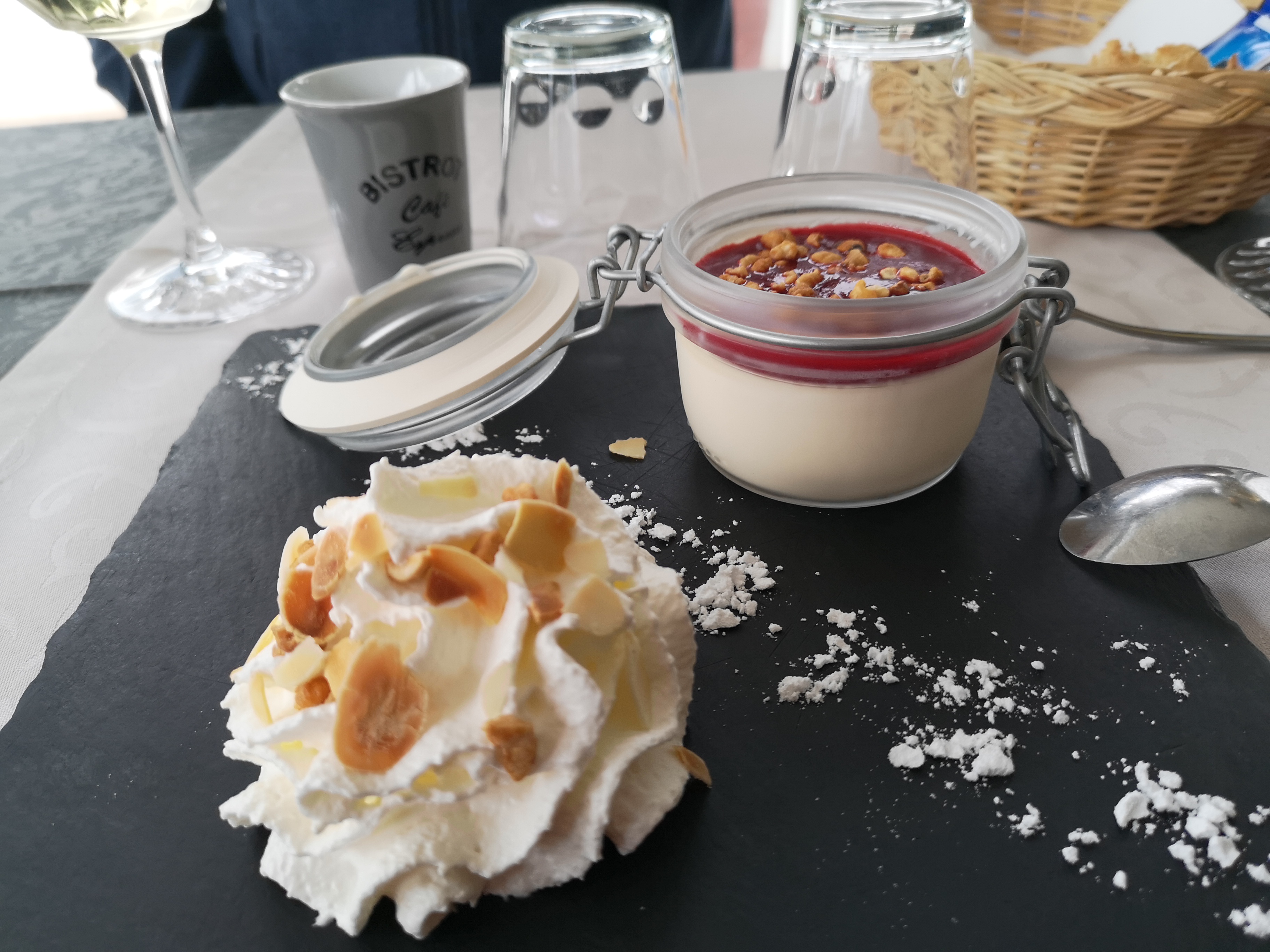 Les assiettes sont copieuses, joliment présentées et délicieuses. L’accueil … un peu moins … nonchalance à l’arrivée, puis arrosage au sanitol en nettoyant la table (mieux vaut en rire) et l’impression que la jeune serveuse se demandait ce qu’elle faisait la … mais le cadre est joli, et la nourriture bonne! Tout n’est pas à changer 😉