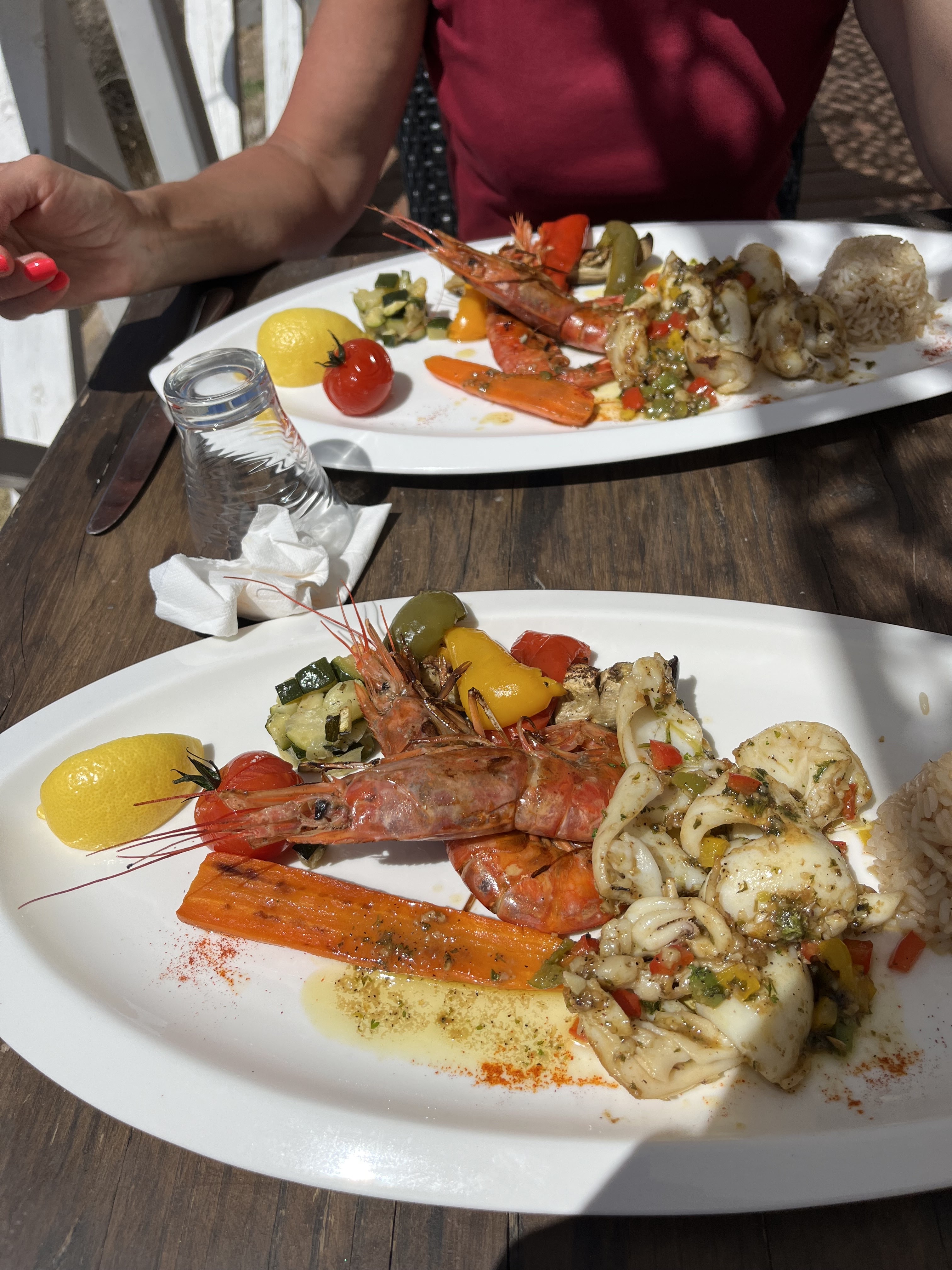 Excellents produits de la mer ( les palourdes à la plancha , un regal !), emplacement top et avec le sourire ! Super soirée