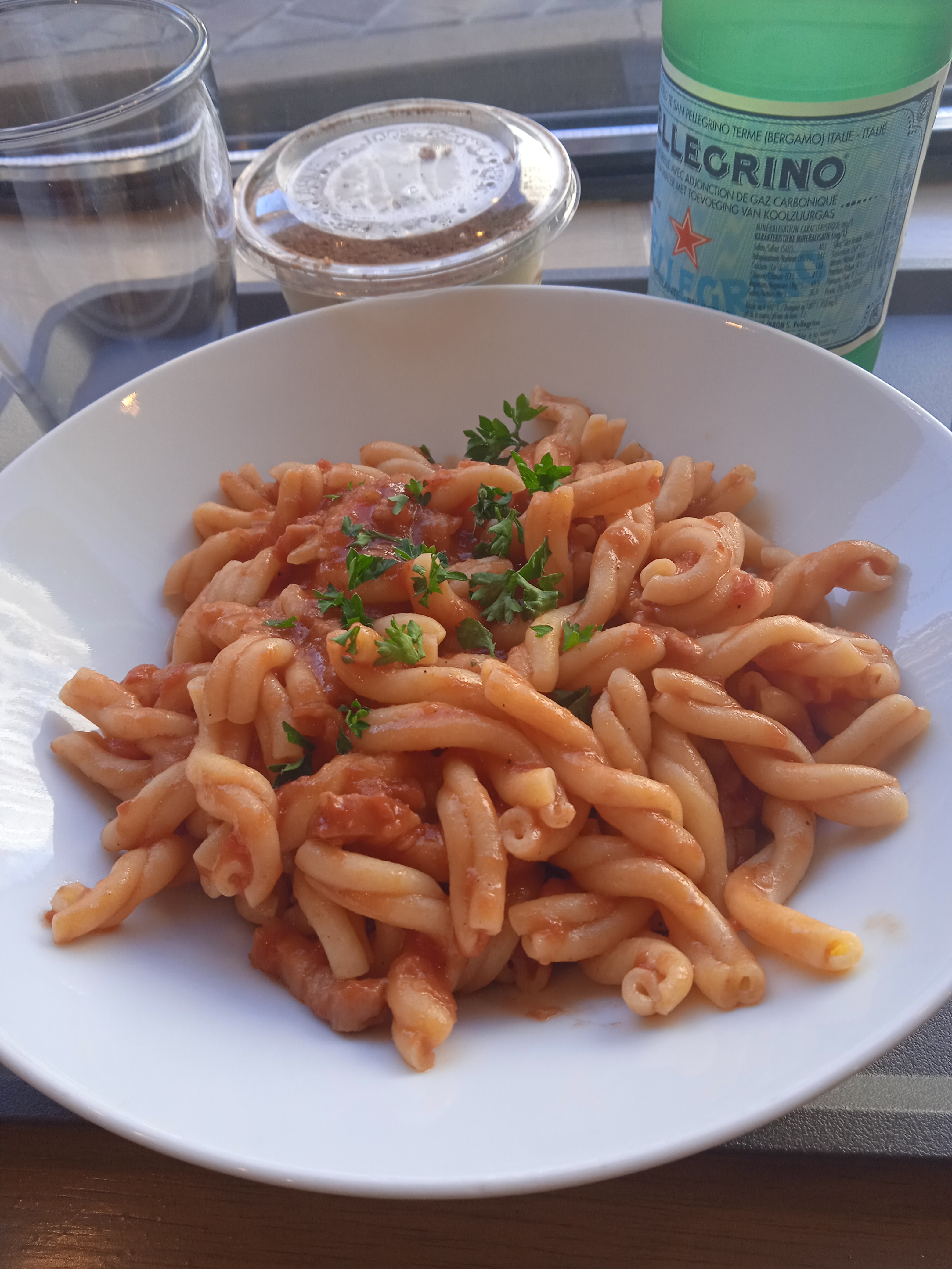 Pâtes fraiches en quantité, sauce généreuse, personnel amical, toilettes propres, c'était parfait !