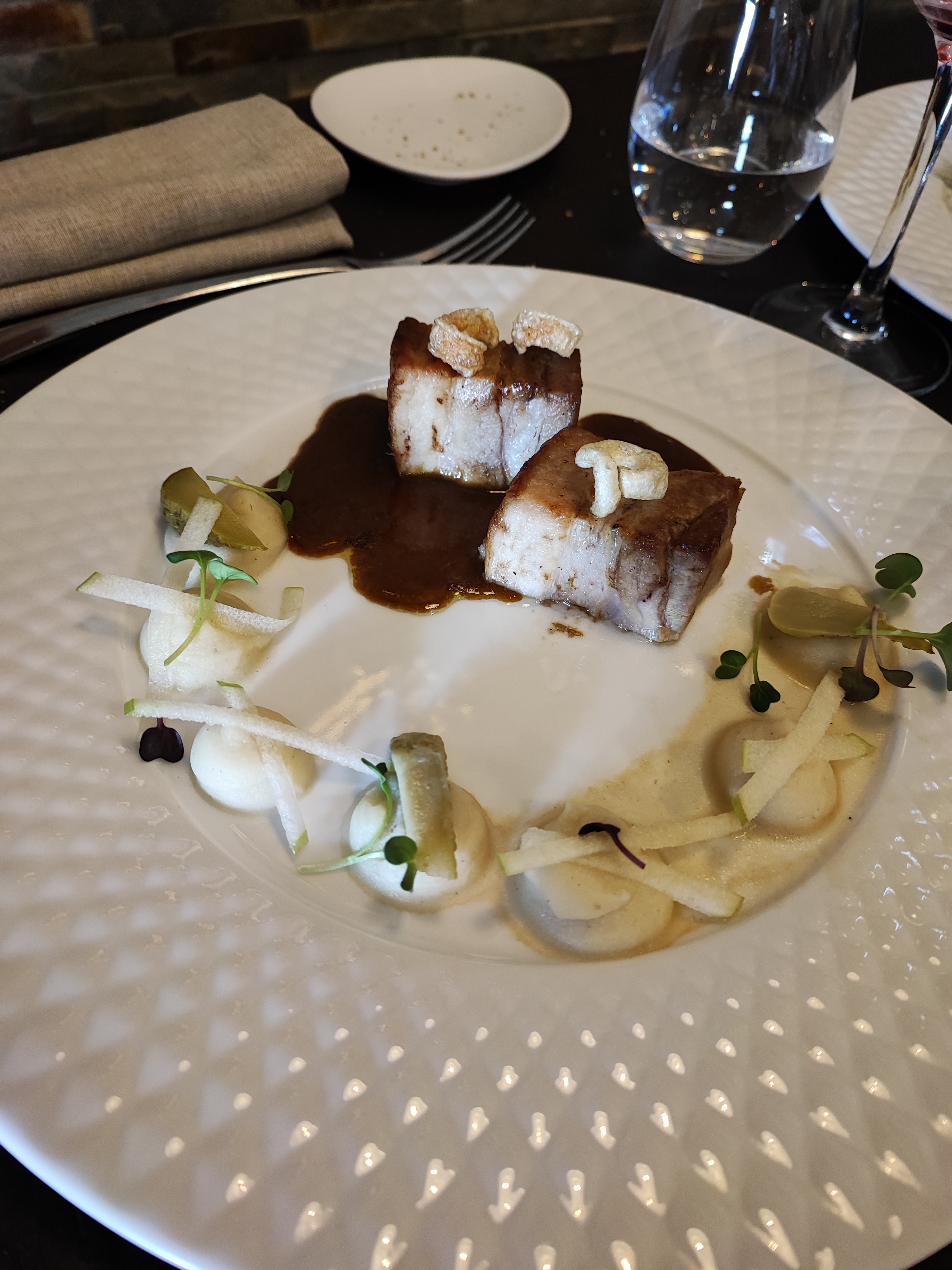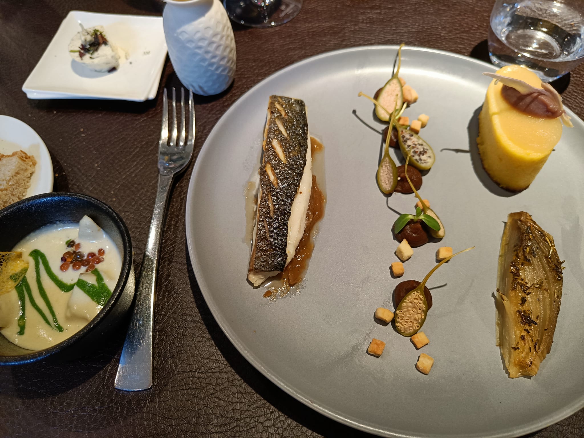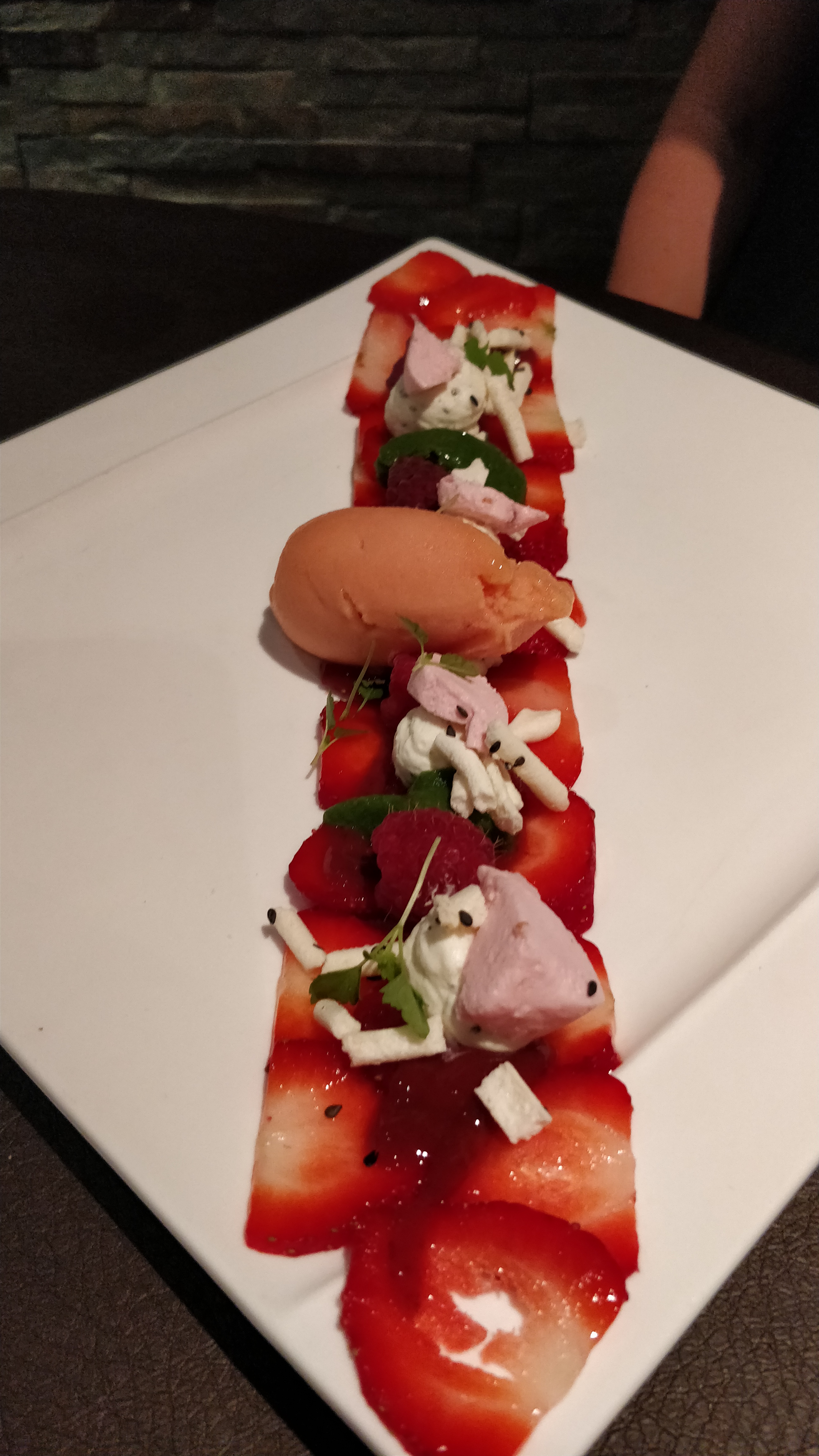 Un régal... Qualité, visuel et gouteux.. On ne peut pas reproduire chez soi, c'est ce qu'on recherchait.. Et la bougie 🕯 pour l'anniversaire, petite intention qui fait plaisir.. Le chef qui se présente pour connaître notre ressenti. Franchement félicitations à toute l'équipe...