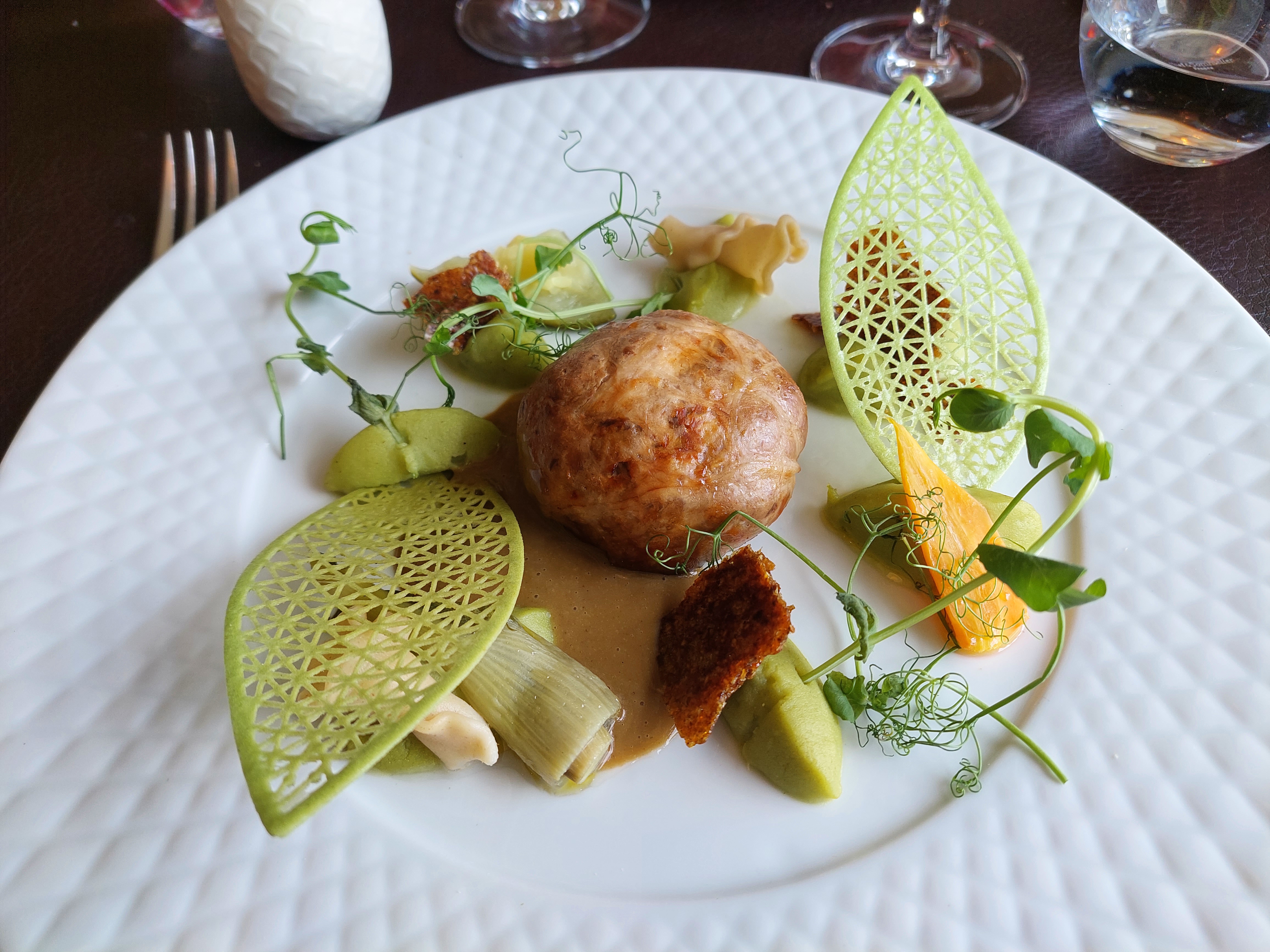 La présentation des plats est magnifique. Le montage des assiettes est digne de photographies , malheureusement la cuisine est tellement fine et vaporeuse que le chef en a oublié les saveurs . Les entrées sont un peu insipides, seul la viande du plat principal est savoureuse. Excellente et raisonnable carte des vins . Service de qualité.