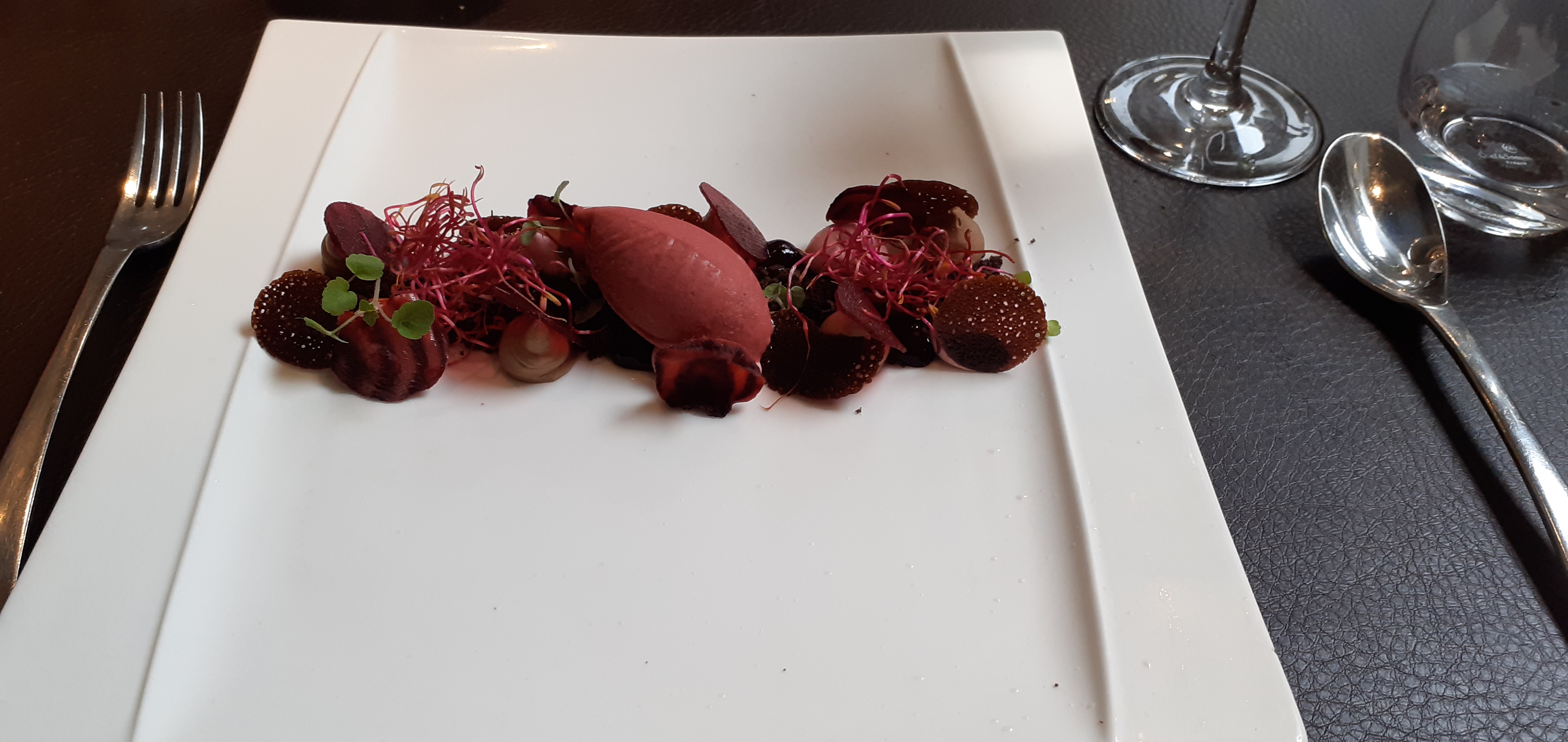A la hauteur d'un restaurant haut niveau gastronomique. Mérite 1 étoile au Michelin. Recherche dans les plats. Dessert à la betterave succulent .