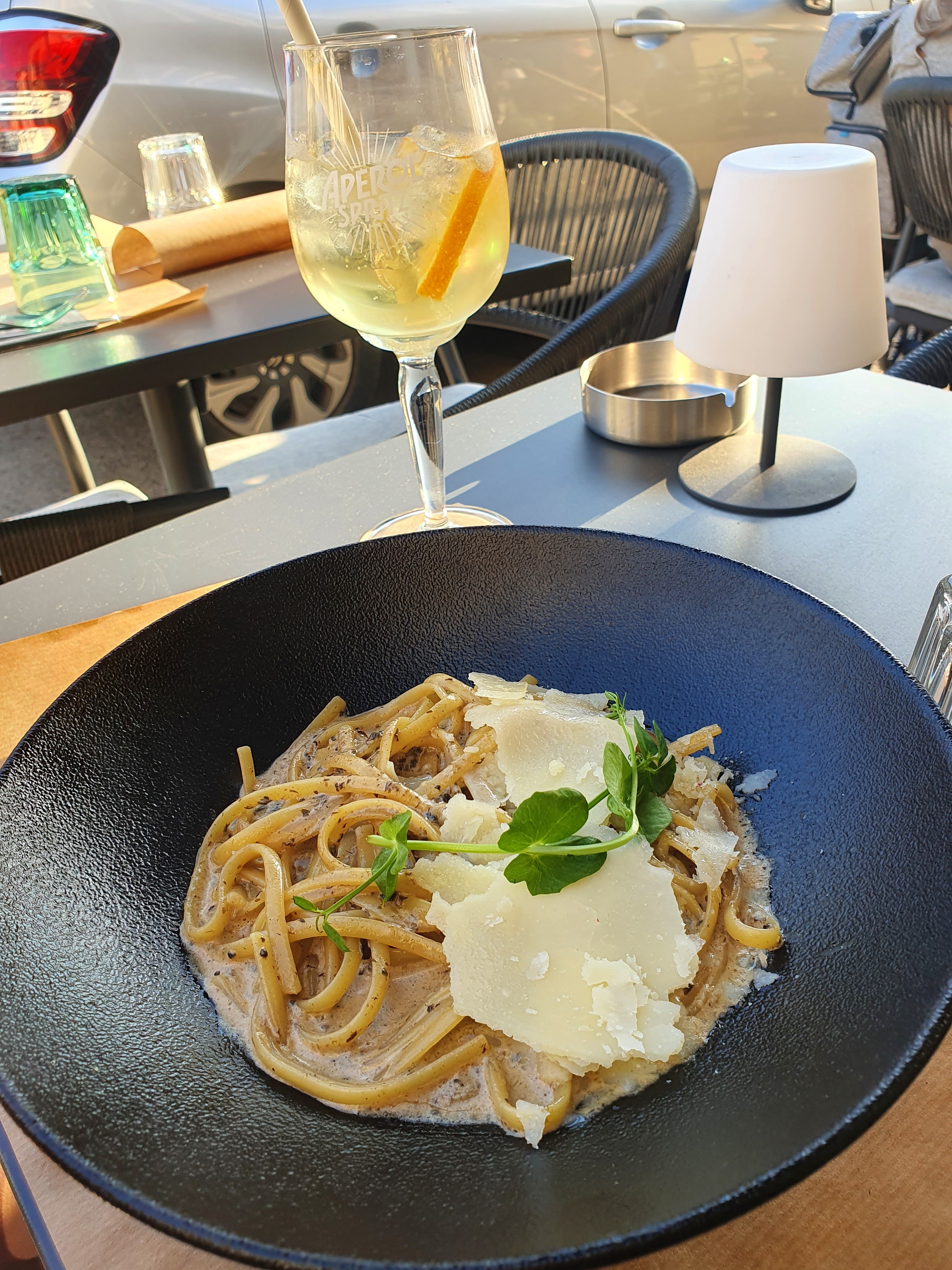 Comme toujours un régal avec le même plat depuis 2 ans maintenant !!! Linguines à la crème truffée. Nous reviendrons dès que possible. Un grand merci à toute l’équipe. Moncef et Christelle