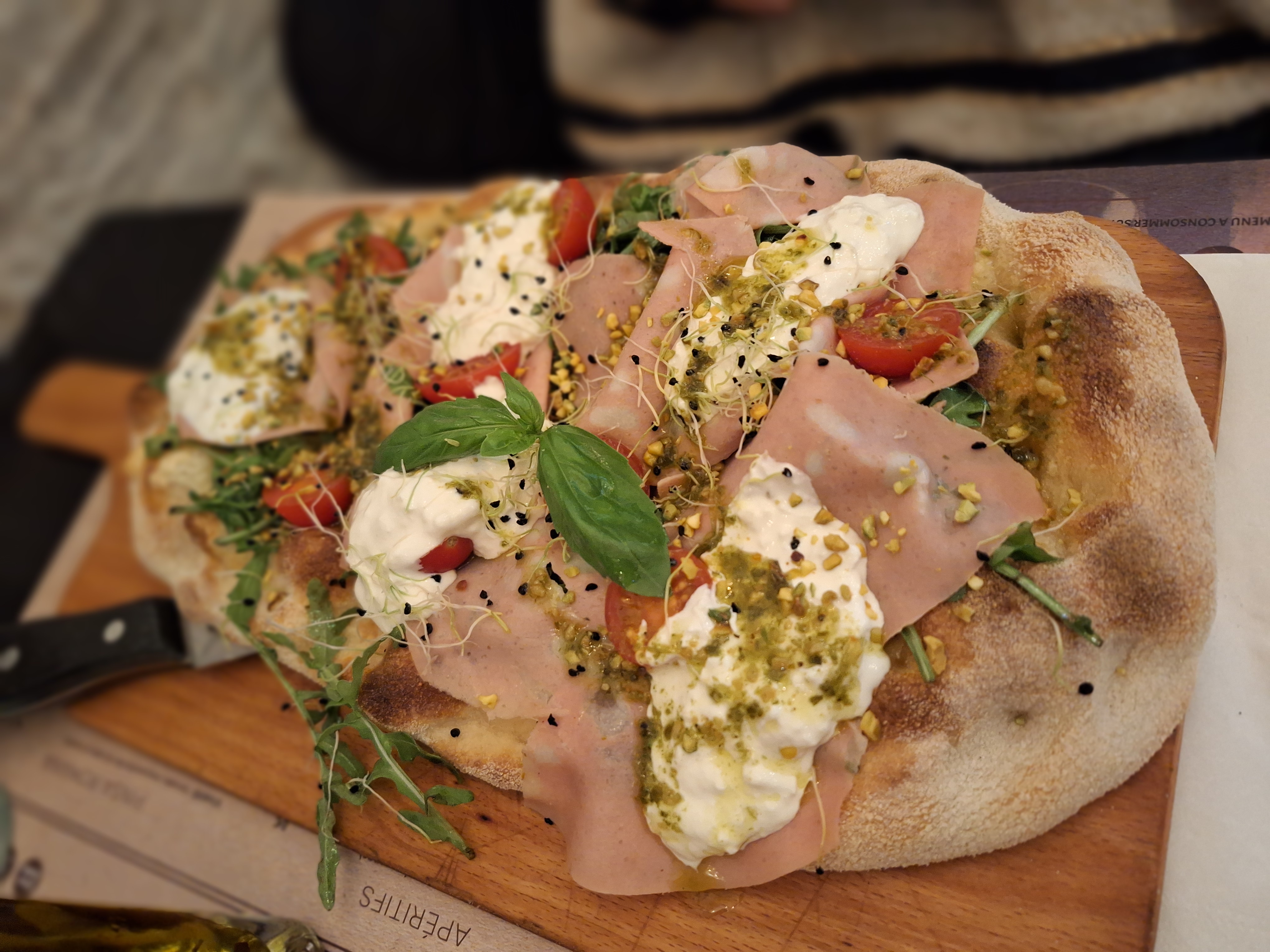 Vraiment excellent!! Très supris par autant de qualité, les ingrédients étaient frais la croute de la pinsa fondante et croustillante, bien garnis, un régal!! Allez y les yeux fermez! J'ai pris la pavarotti et remplacé le jambon par de la bresaola, c'était sublime! Le service aussi rapide avec un super serveur. Allez y!