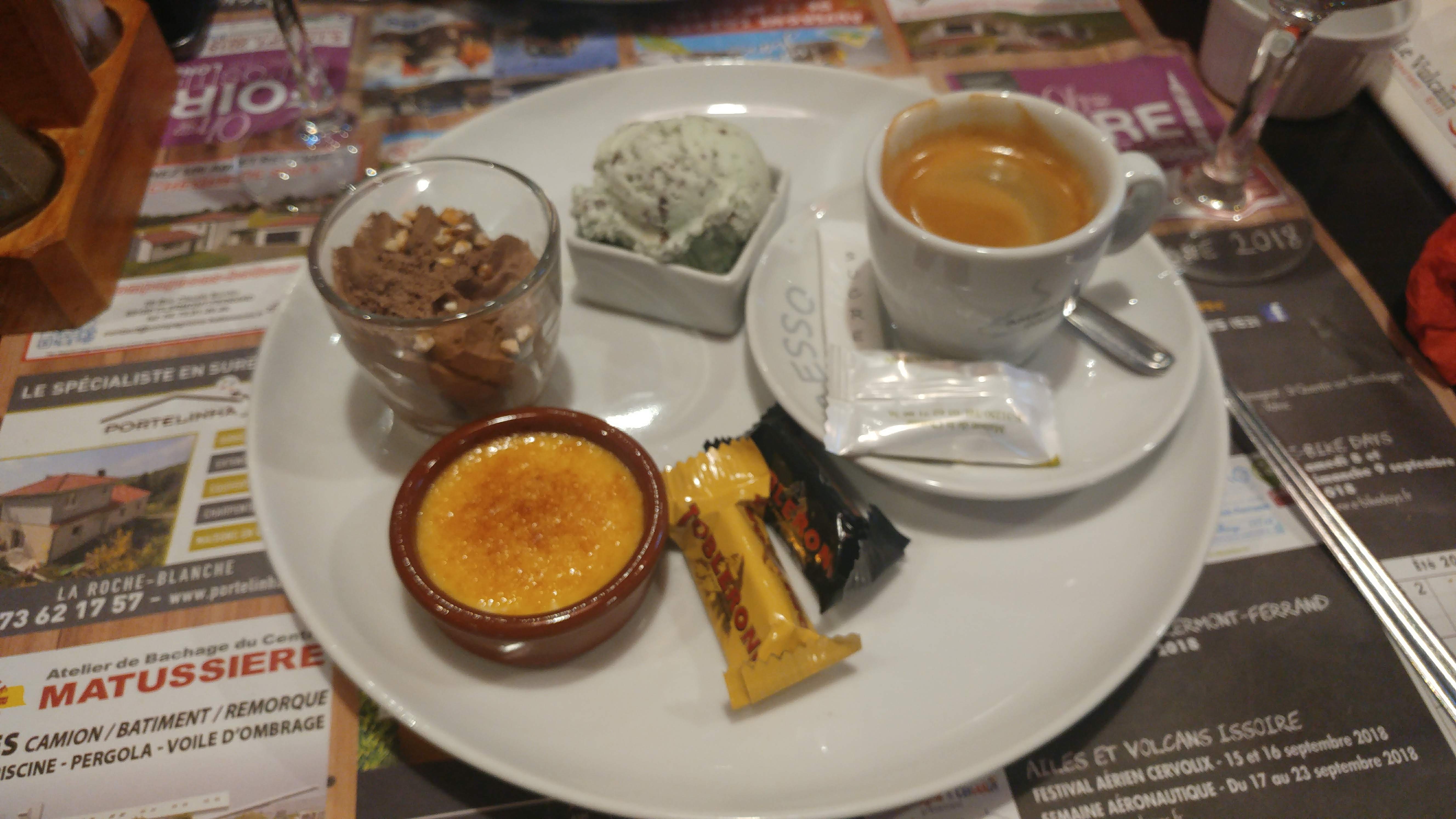 Le hamburger auvergnat n'avait franchement que très peu de goût, surtout le lard très caoutchouteux et le peu de fromage au bleu... La pizza auvergnate était correcte (car il n'y avait pas assez de pommes de terre). Les tiramisu auraient pu être plus froids..