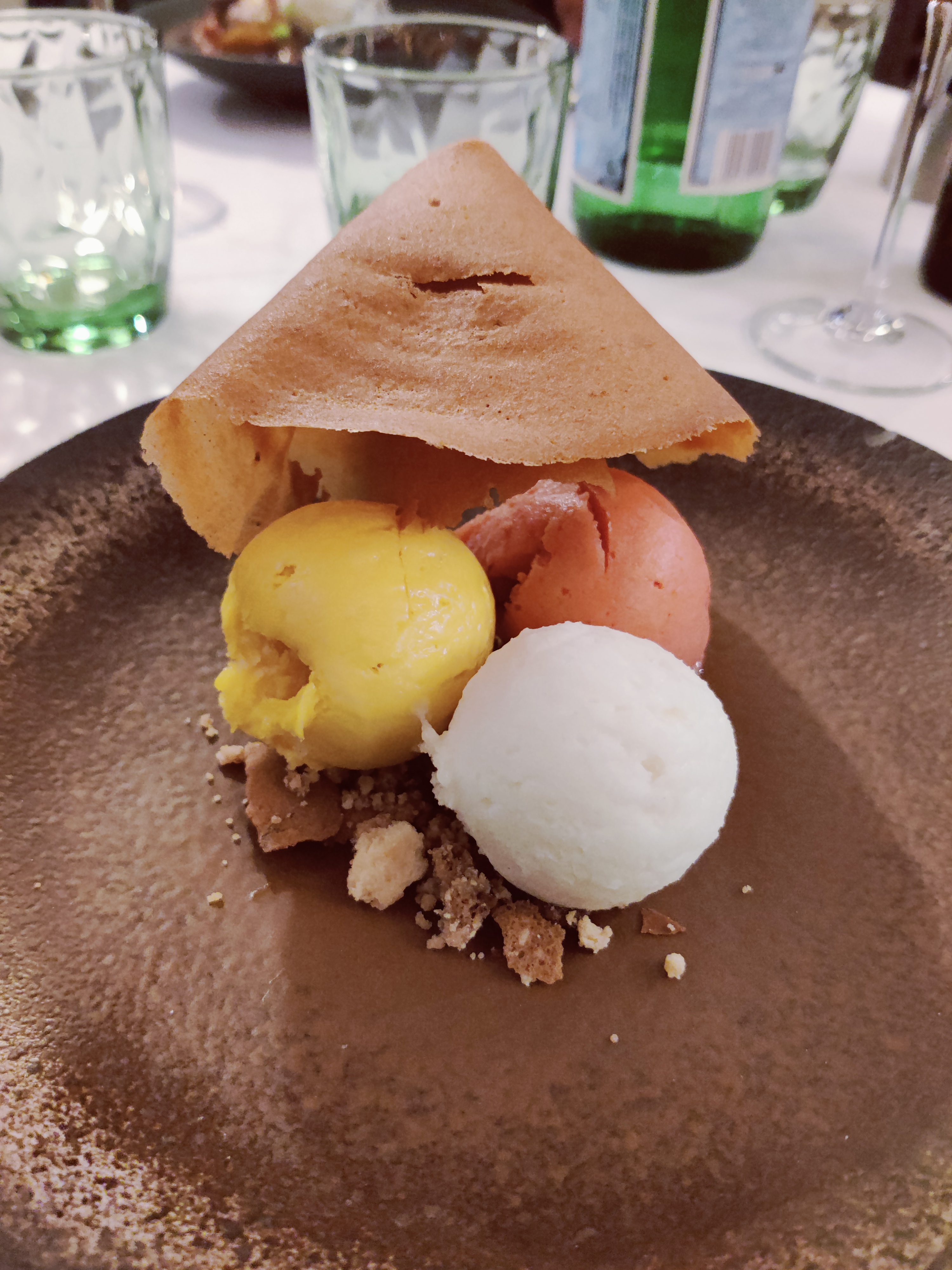 Les plats proposés pendant le confinement sont originaux et très bons. Nous avons fait le tour des desserts : mention spéciale pour la sphère chocolat qui est délicieuse (et magique !).