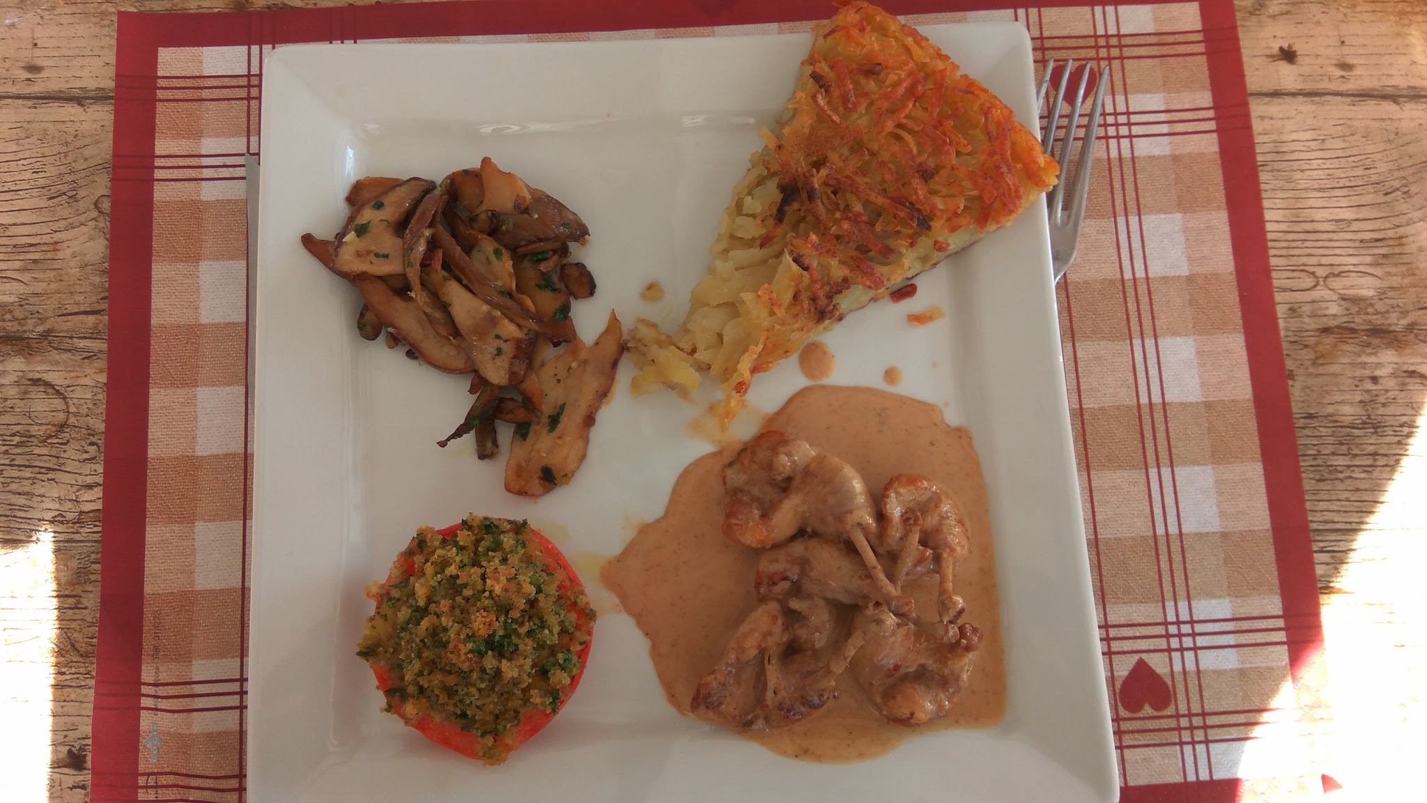 Fondue aux cèpes délicieuses ! Cèpes ramassés par le patron chef cuisinier de l’établissement !