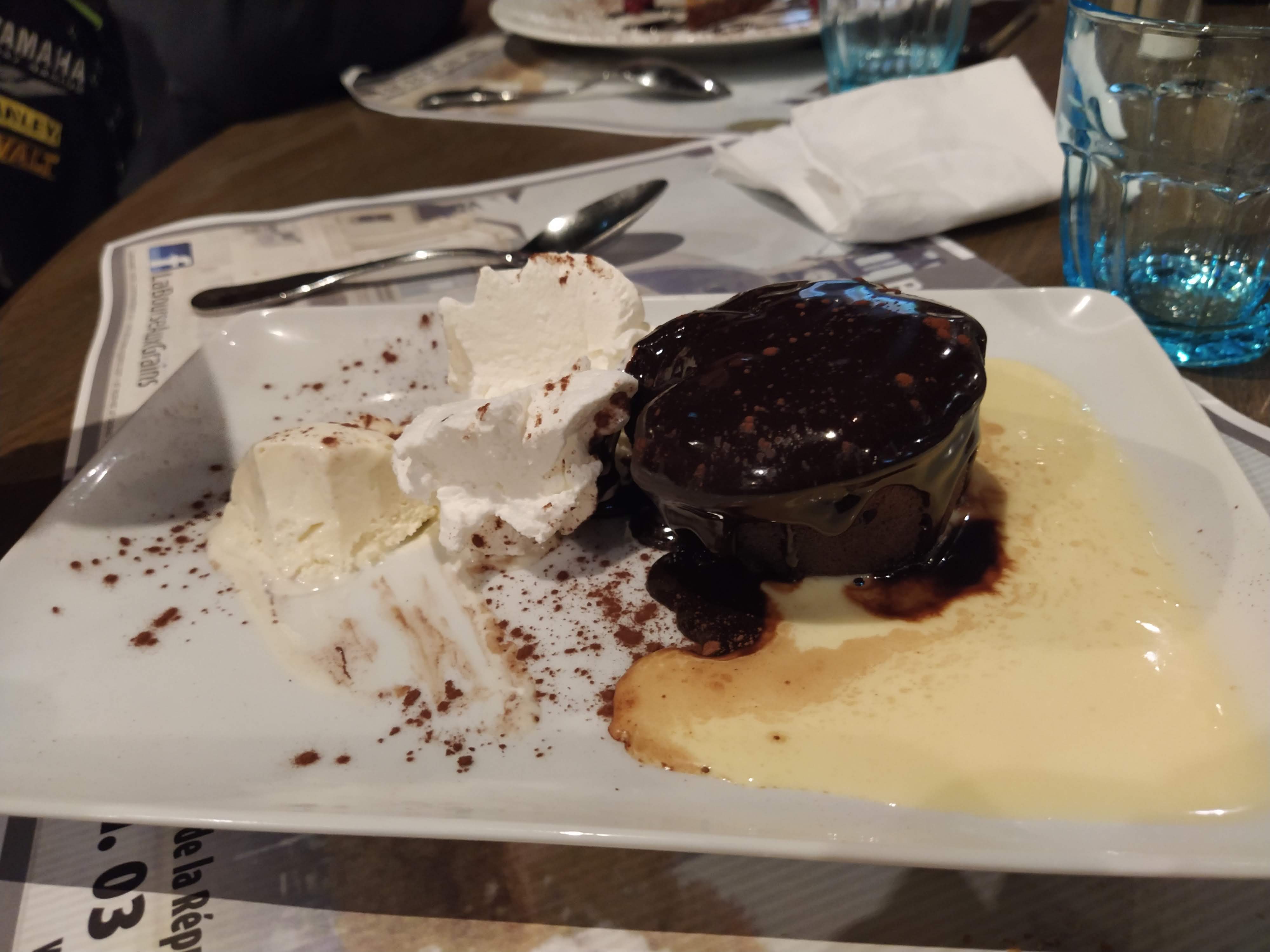 Très bon accueil les plats délicieux et idem pour les desserts pas de bière brune mais la serveuse nous a proposée une bière de noël ambrée le personnel est très aimable et serviable de passage nous avons été ravis bravo continuez comme cela merci nous reviendrons.Le top plus une borne de recharge électrique en face du restaurant génialissime