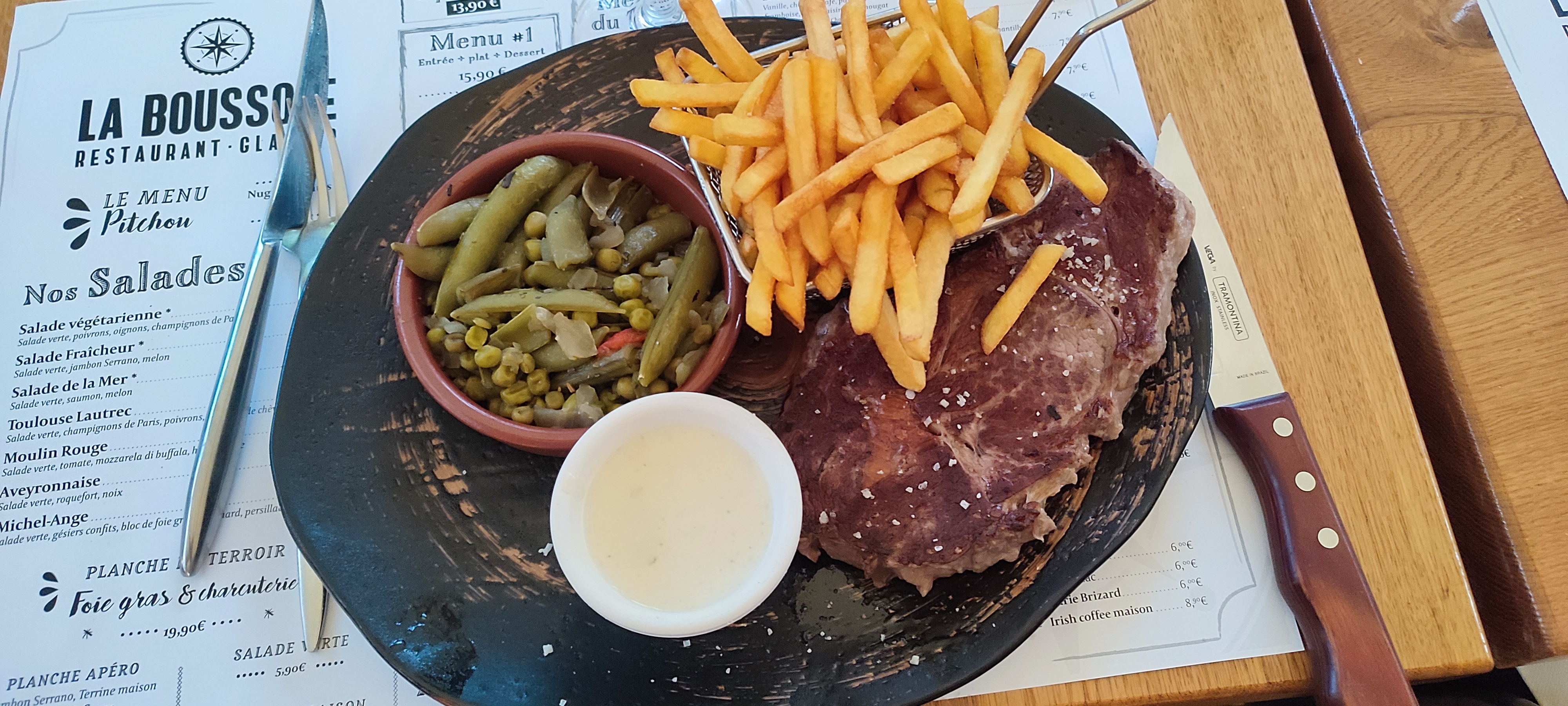 D'une cuisine très moyenne au service déplorable : Tout avait pourtant bien commencé avec l'accueil très aimable et souriant d'une jeune serveuse blonde... Ensuite de la prise de commande en passant par les toilettes, l'hygiène jusqu'au règlement de l'addition, on côtoie le médiocre et le désagréable ! Pas trop le temps de finaliser une commande une fois installé (on vous saute dessus et si vous hésitez, on passe à une autre), aller aux toilettes ne doit pas s'accompagner d'une question sur son lieu (on vous répond avec beaucoup de sarcasme que même, s'il n'y a qu'aucune indication les renseignant, il n'y a qu'une porte ! et que t'es bien qu'un touriste à poser ce genre de question...rigolades entre eux !), un couvert tombe par terre en arrière salle (on le ramasse pour le servir sur une autre table !), le serveur continuellement avec le masque sous le nez à faire le service en salle, pas une question entre les plats si cela a été (après tout on est que du touriste de passage à abattre, il manquerait plus qu'il faudrait s'y intéresser) et pour finir l'addition que je réclame depuis 1/4h (à laquelle on me répond sans vergogne ni encore moins politesse qu'ici les métro ne passent pas toutes les 5 mn et qu'on n'est pas à Paris, un truc dans le genre pas tout compris mais si t'es pas content alors que tu veux payer, c'est pareil...un comble !) jusqu'à mon souhait de régler une partie jusqu'à 38€ par ma carte restaurant après m'être bien assuré que le restaurant acceptait les titres restaurant (qu'est ce que c'est que çà, pas possible, on n'est pas en ville ici, on n'est que des campagnards continue t'il avec beaucoup d'insolence...j'abandonne l'affaire dégouté alors que partout ailleurs on a jamais rencontré de problème jusqu'au dernier à Montauban, ville voisine pourtant comparable !) Si la cuisine reste basique mais acceptable, l'impression générale qui s'en dégage à la sortie est très négative, largement entachée voire polluée par ce genre de service léger et incompétent qui ne s’intéresse qu'au portefeuille du touriste tout en le dédaignant en même temps !! Nota 1 : avec ce serveur (toujours le même, un brun avec sa petite moustache) qui nous a pris visiblement pour des parigots (dans sa tête assurément bien remplie, parisien = tête de chien), on n'allait pas lui dire qu'on était de Nantes et de Bretagne (car sinon bien sûr, breton = tête de con) ! Nota 2 : dans l'incompétence précitée, ils n'ont pas réussi à comptabiliser correctement l'addition, le bon dieu nous a épargné de toutes les boissons soit une quinzaine d'euros ! Une sorte de pourboire inversé pour tous les services non rendus !