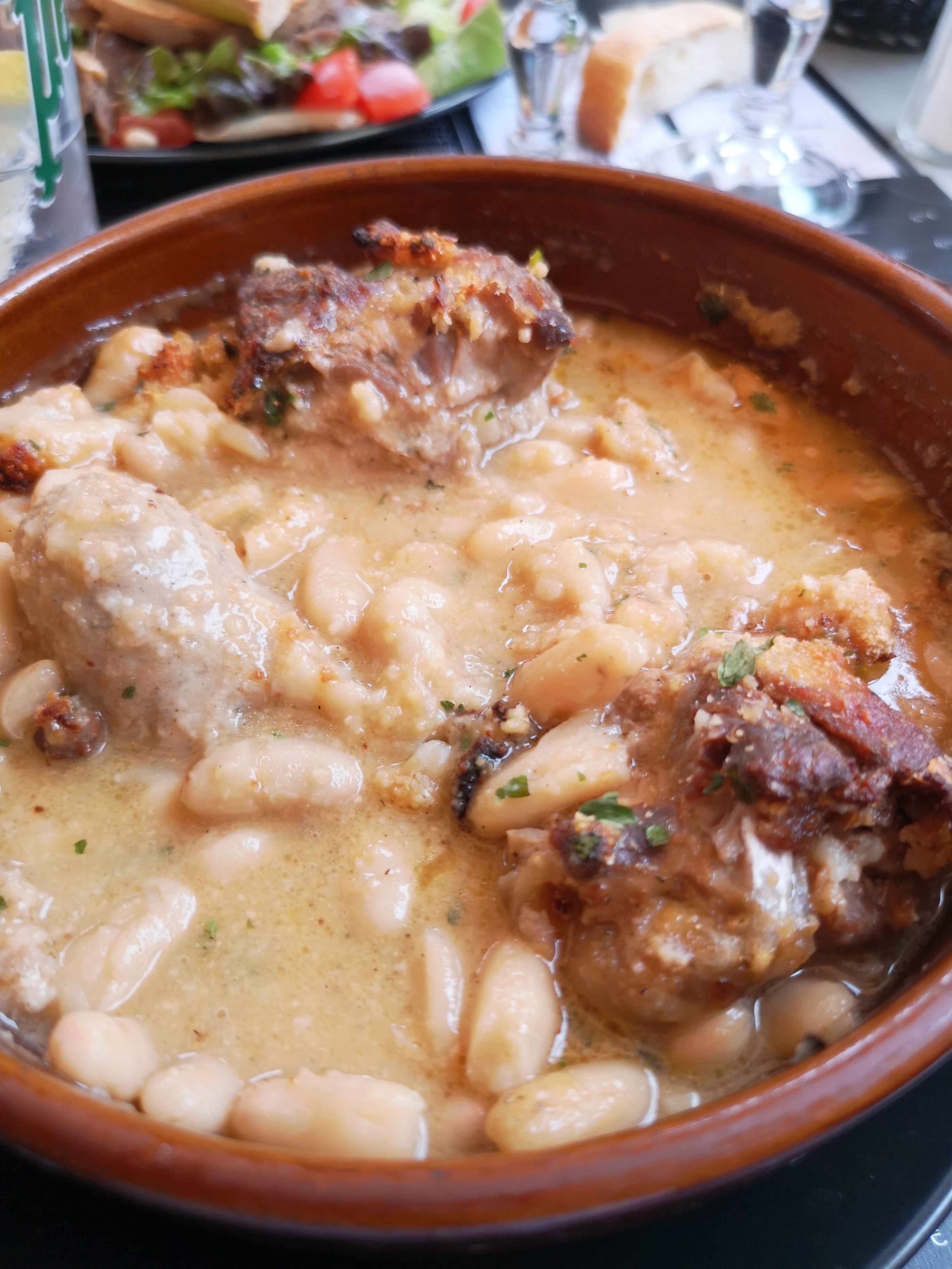 Je ne suis pas le seul a etre decu du cassoulet. Nous etions plusieurs a avoir choisi le cassoulet. L ail masque toutes les saveurs, la viande tombe en agitant l os, l os est cassé net (brisé comme par une machine) ... cela ne me conforte pas dans l idee d avoir dans l assiette une viande de qualité. Il est vrai que rien n est indiqué qu ils vous servent du maison. Le service ... moyen. On a pu constater des aller retour par les serveurs avec des plats en mains ... erreurs de commandes ou hésitations sur les destinations des tables des clients... Bref, pour ma part je ne conseillerai pas a mes amis mais plutot a mes ennemis
