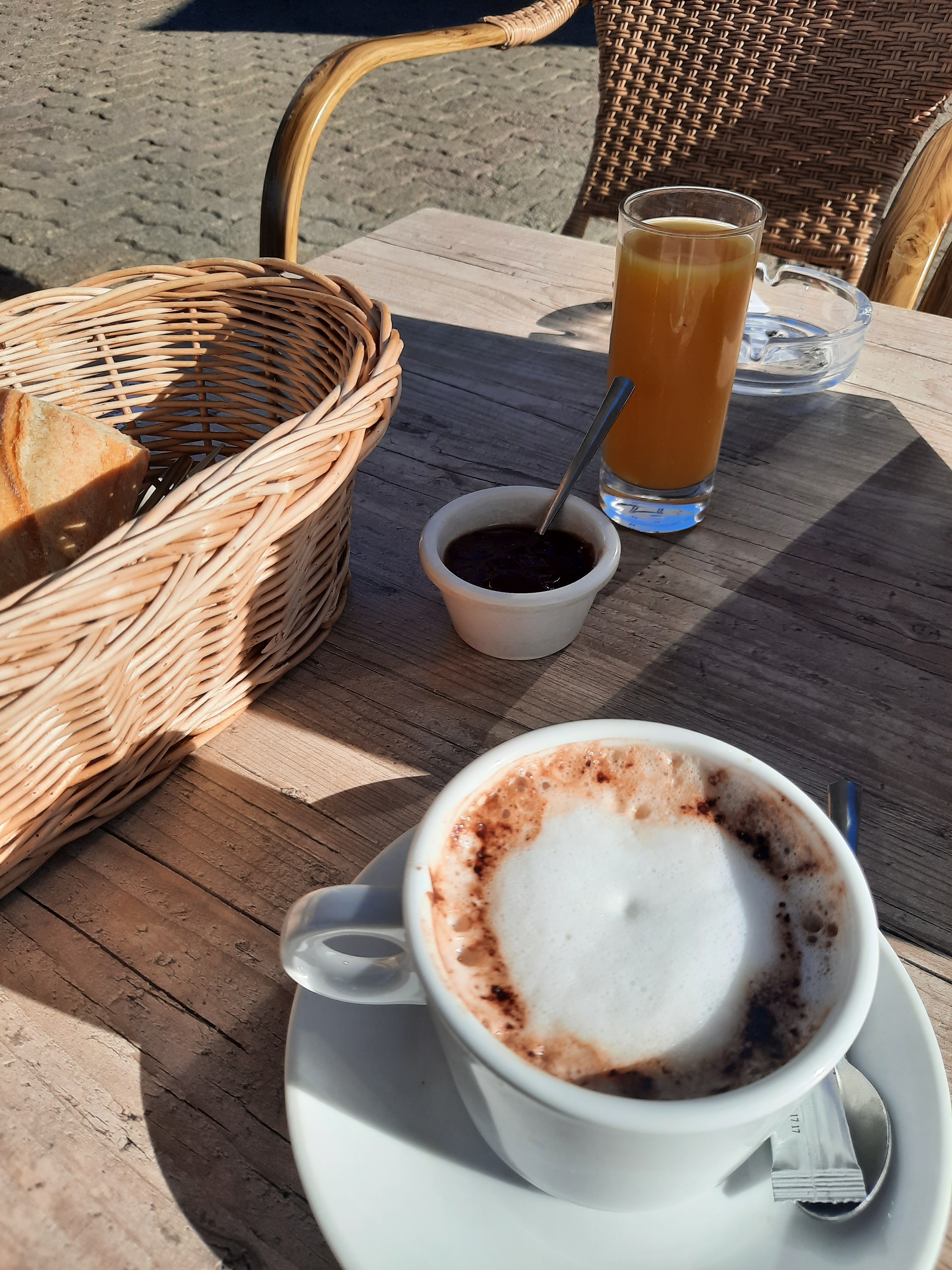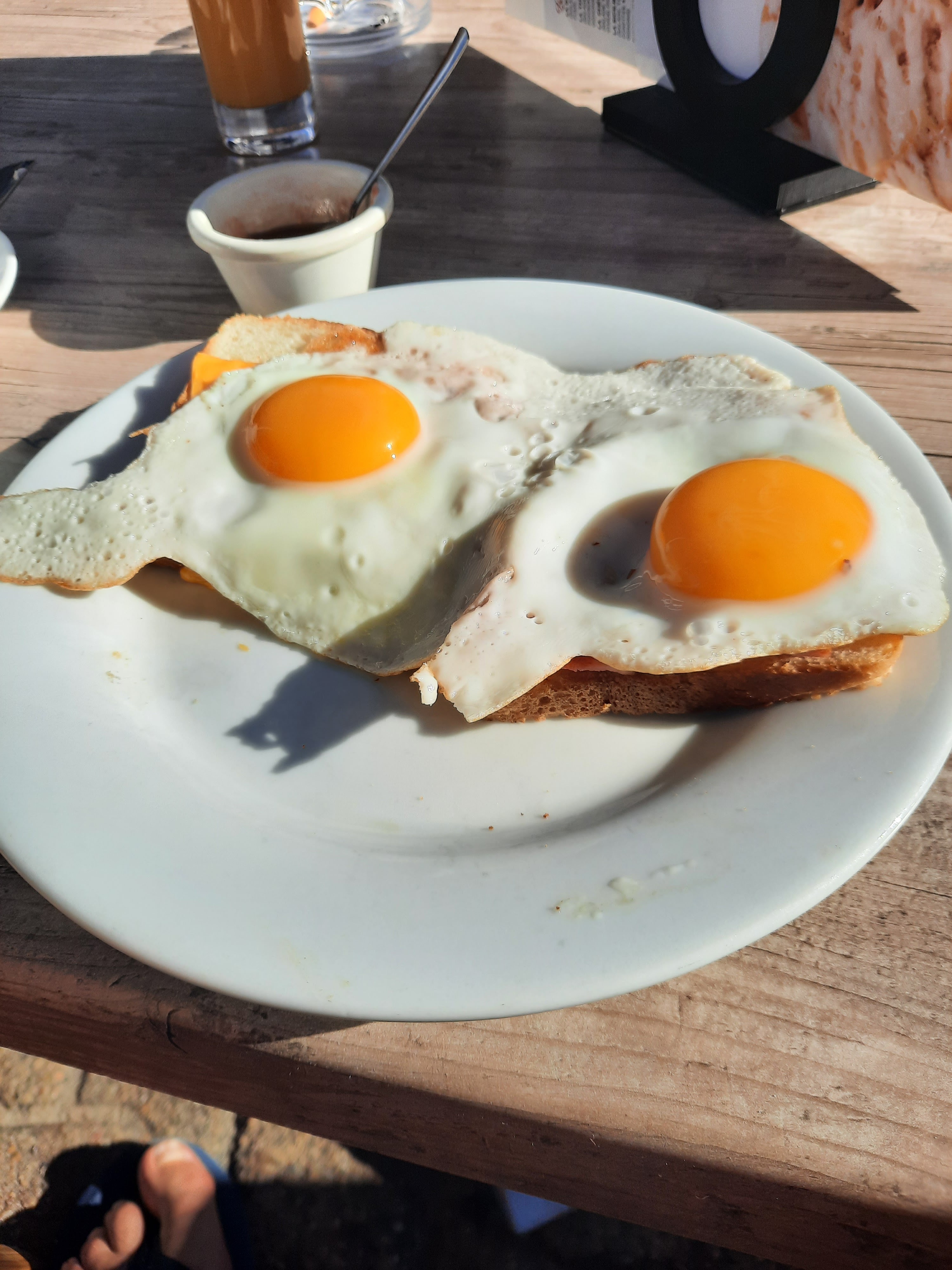 Petit déjeuner à 7.5e pour 2 oeufs toastés, jus d'orange chocolat chaud pain beurre et confiture, difficile de faire mieux ! Service très rapide, on reviendra