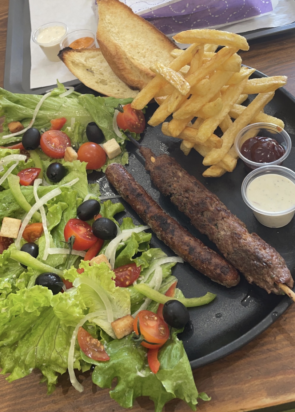 Assez fréquenté, la viandes est bonne (brochette de poulet et tenders) cependant je n'ai pas apprécier le temp d'attente de plus de 45 minutes alors que j'ai deux enfants en bas âge sans me prévenir à l'avance et sans aucune gènes. (Commande payée à l'avance sinon je serai parti depuis longtemps. Je précise qu'une connaissance a eux est venu après moi et a été servi en cinq minutes. Bonne appétit!