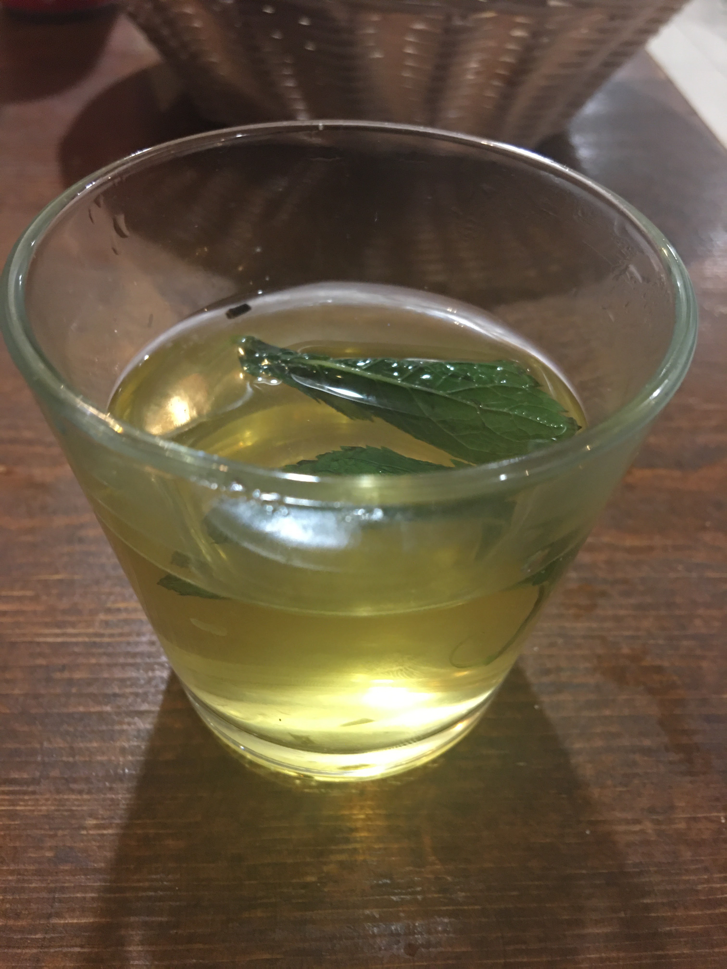 On a bien mangé. Bon thé à la menthe.