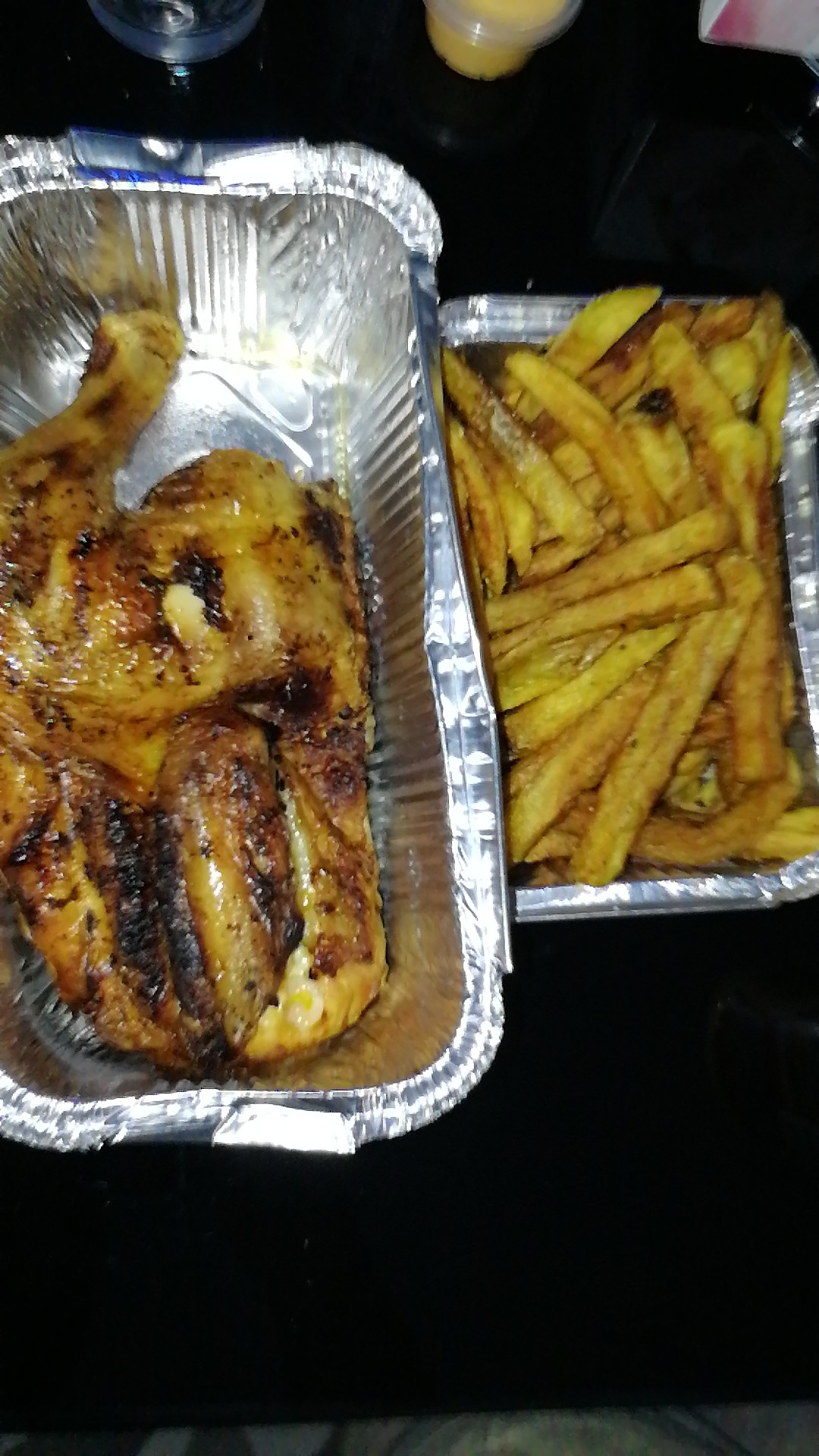 On a commandé à l'avance et emporté nos plats. L'accueil était chaleureux et le poulet succulent. Les frites sont délicieuses, ça change du surgelés que propose d'autres commerces. Une portion peut se manger en deux fois.