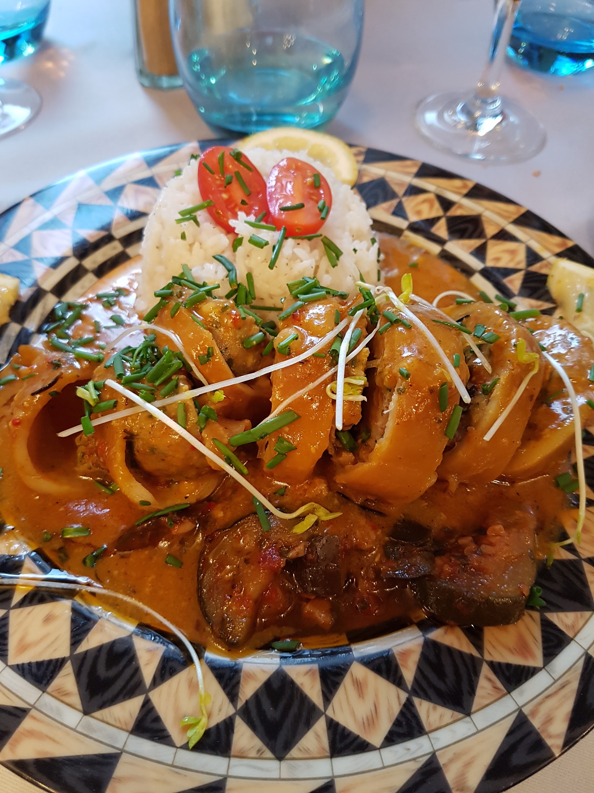 Gambas flambées étaient caoutchouteuses, les moules étaient froides. Marmite de poulet, ce dernier manquait de cuisson, il n'etait pas saisi. Le café est à 2.80, prenez le ailleurs. La carafe d'eau est servie en option sur demande. Le pain est digne d'une baguette d'hypermarché.