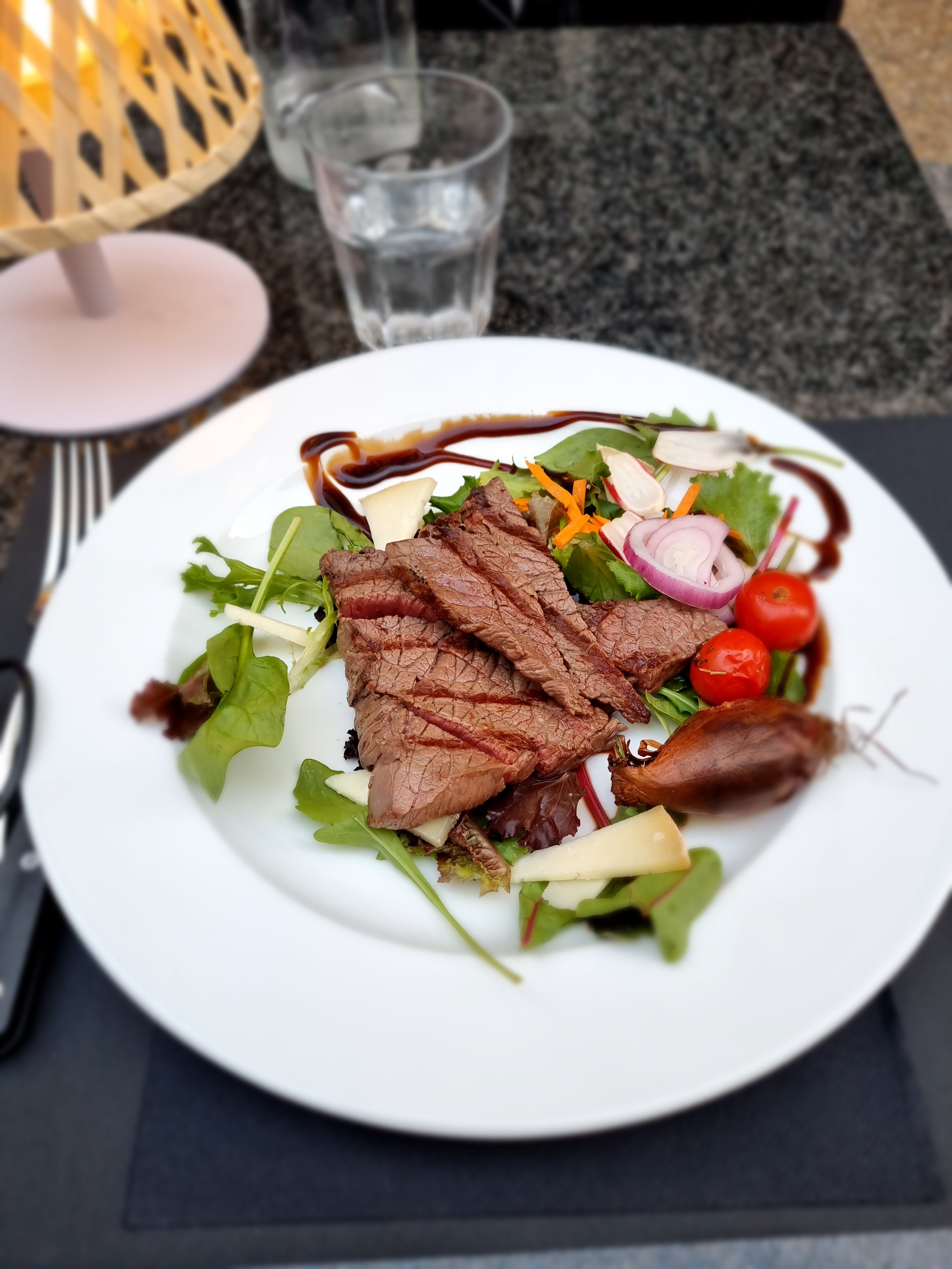 Absolument délicieux, viande de très belle qualité et cuisson parfaite... les accompagnements sont excellents aussi. La terrasse est des plus sympathique et le personnel y est remarquable.
