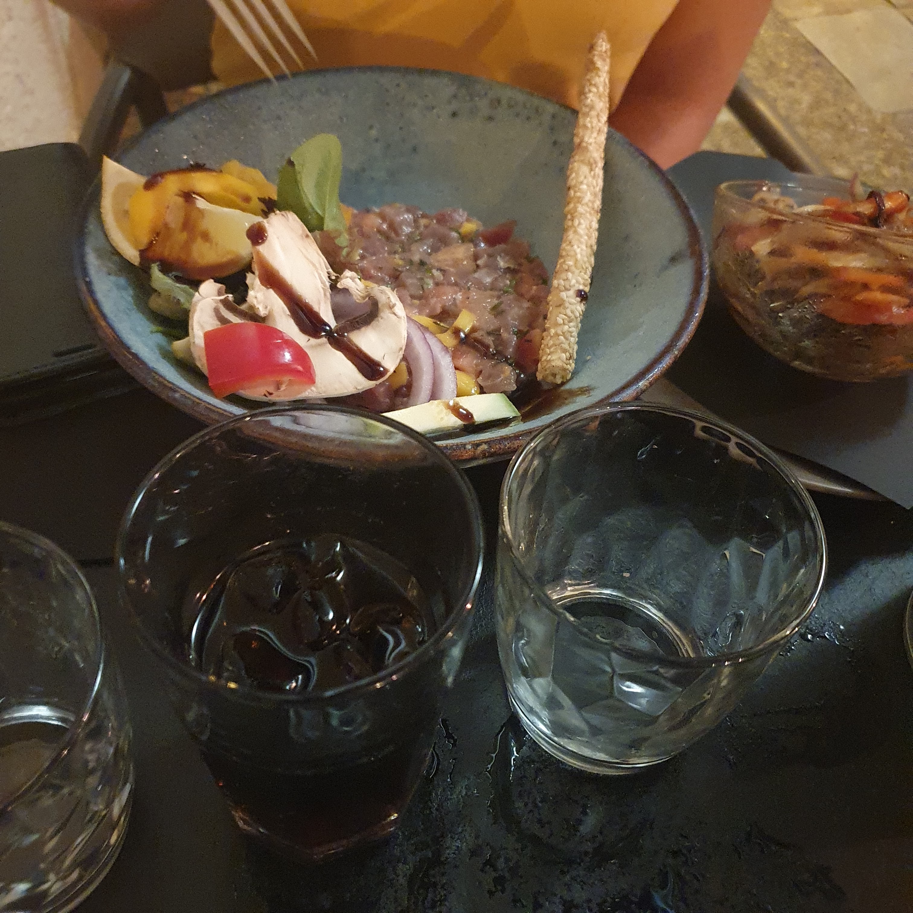 J y suis et je viens de me régaler avec du thon rouge et mon épouse avec un carpaccio de thon Belles assiettes biens dressées et copieuse Très bon service et attentionné Prix correctes
