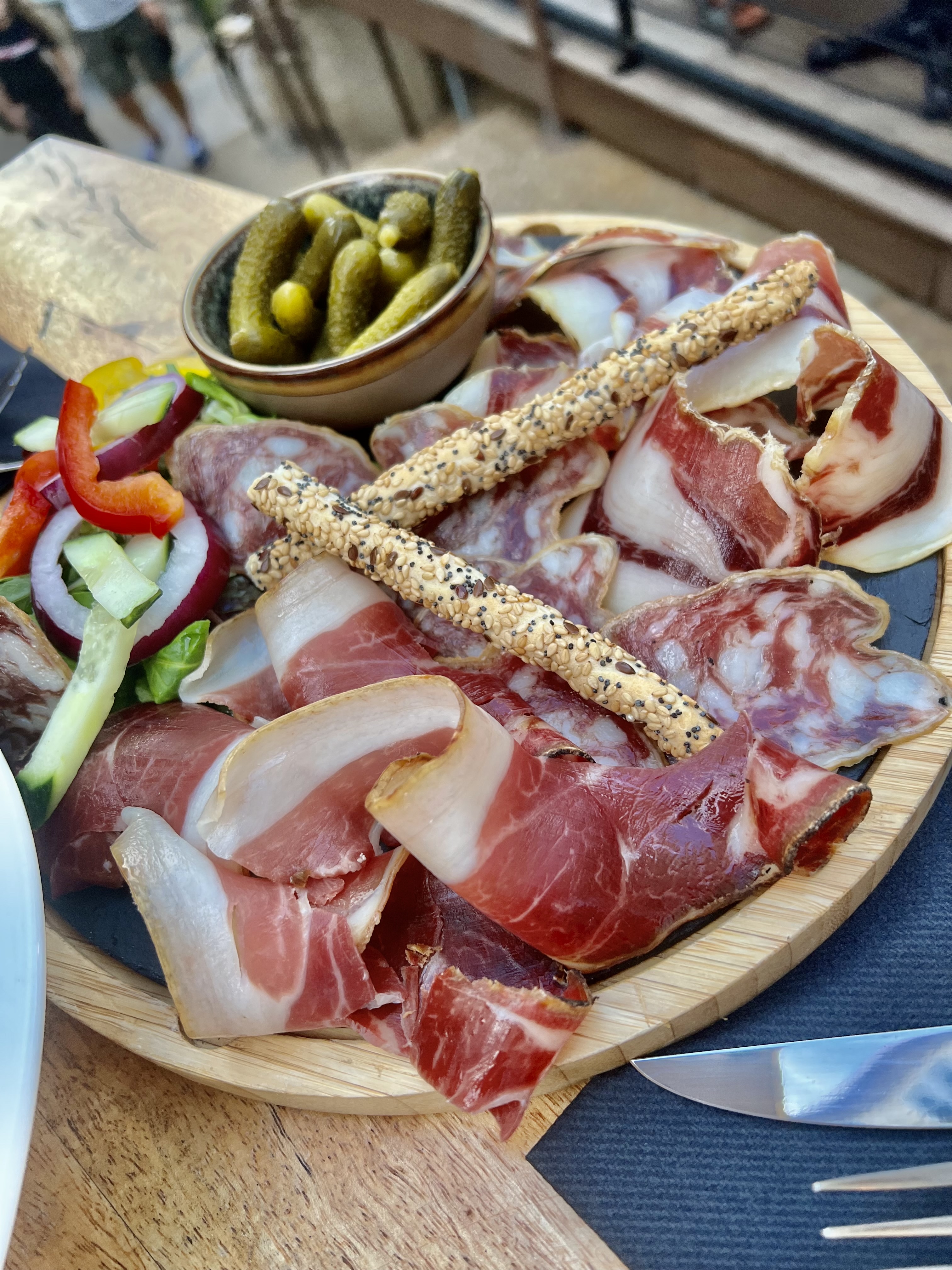 Nous avons pris une planche de charcuterie et une de légumes grillés à partager à deux et c'était succulent! Les desserts valent également le détour!