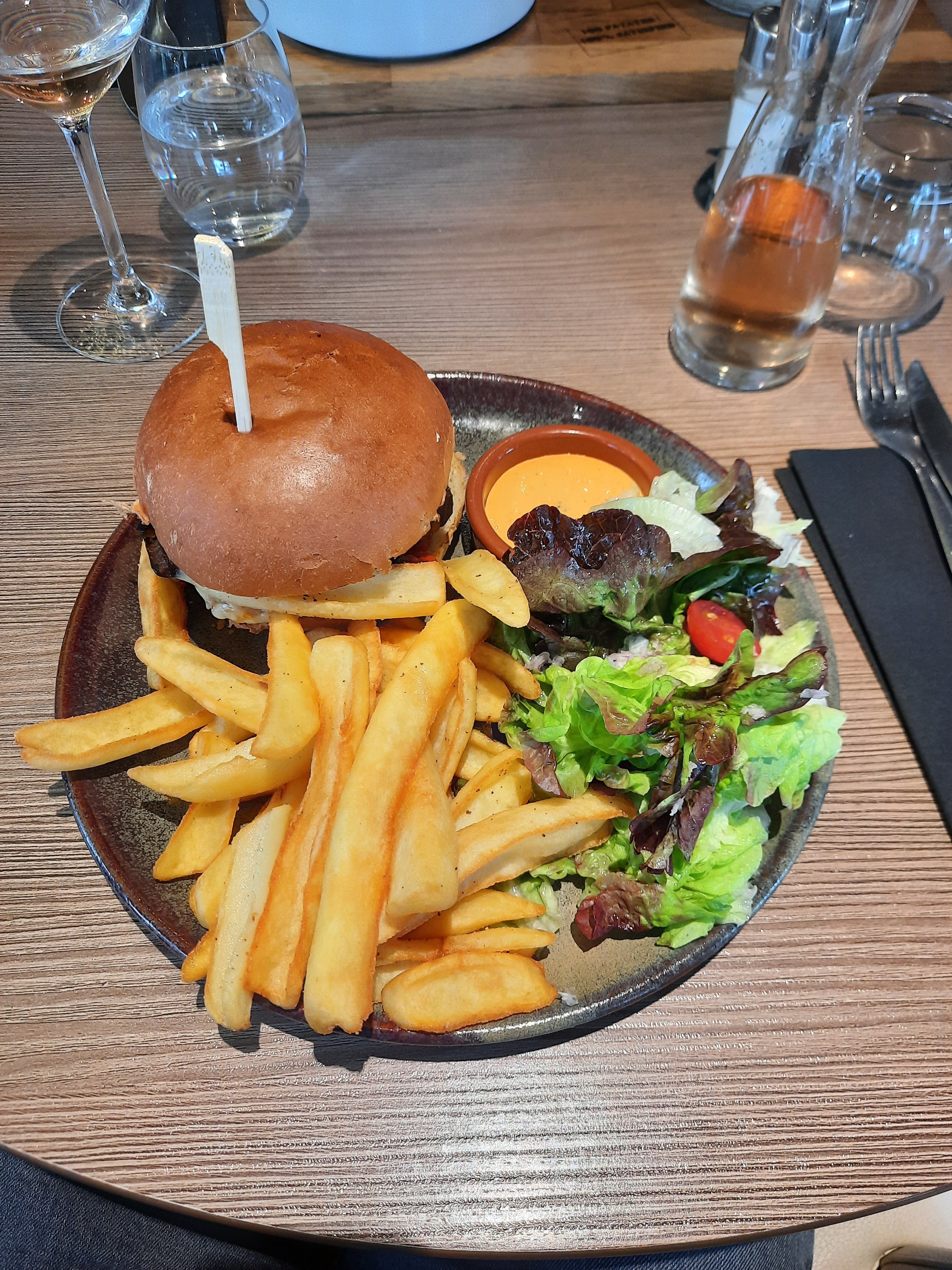 Excellent !! On a pris le burger authentique et le burger raclette : (boeuf Angus) très bons, ils calent bien, avec rosti de pomme de terre, salade fournie dans l'assiette et les frites maison en quantité ce qu'il faut pas excessif. En dessert : crème brûlée bien caramélisée, et fondant au chocolat délicieux avec chantilly au caramel et boule vanille Nous reviendrons la prochaine fois !