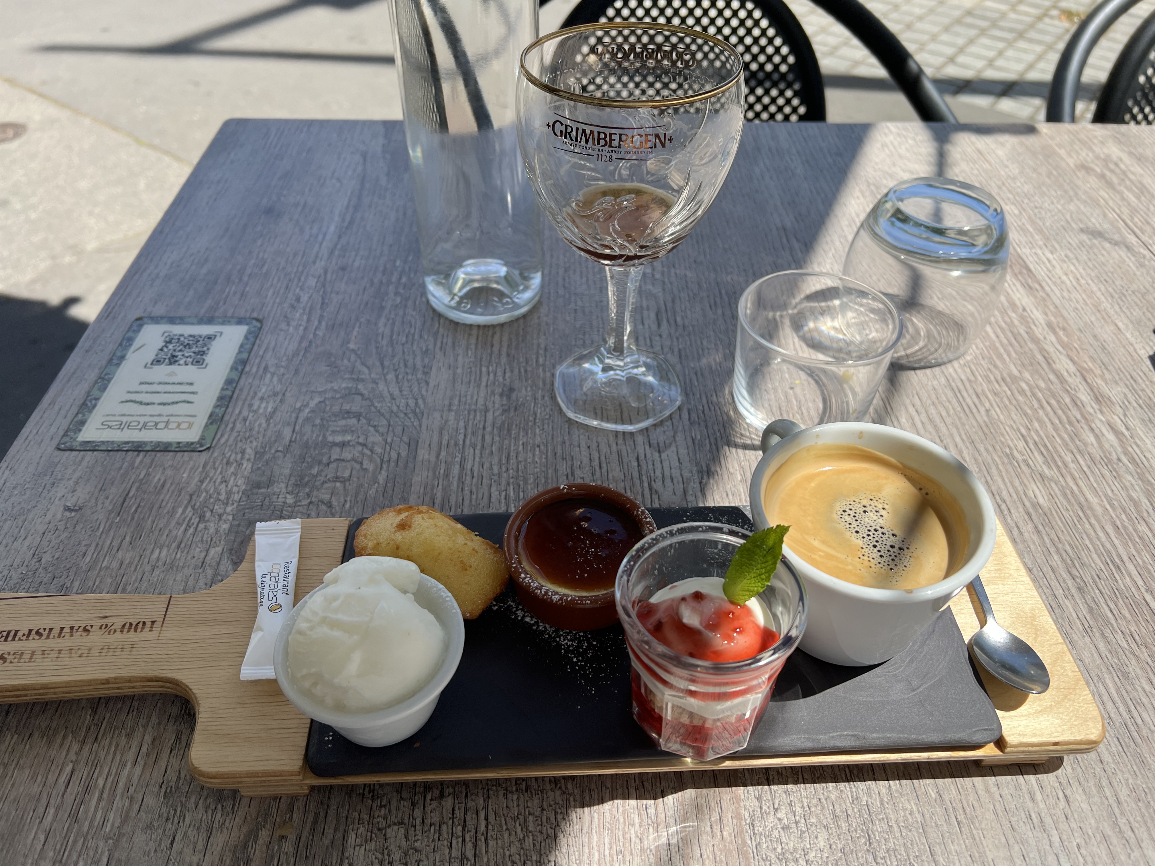 C'est un très joli restaurant et la carte est chouette dommage que le service soit très TRES lent et désorganisé. Le serveur a refusé de mettre un double expresso dans le café gourmand, la moitié du tiramisu était immangeable car la couche de chocolat était trop dure et épaisse et il nous a répondu qu'est ce que vous voulez que je fasse.... changer de métier ?