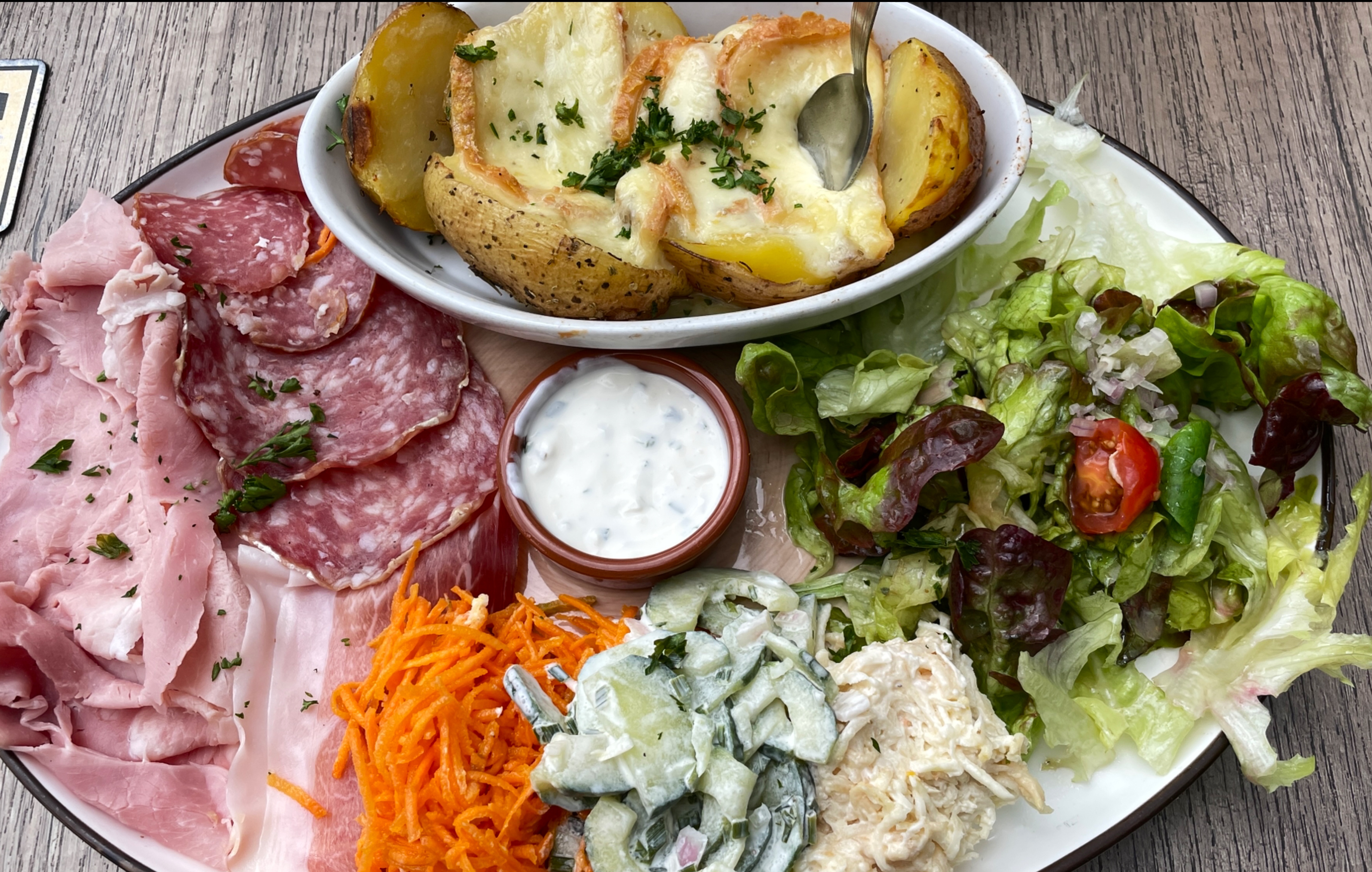 Excellente brasserie, ravi de notre découverte. 🙏🏻 Comme le nom l'indique il y aura surement des pommes de terre dans vos plats. 😜 La 🥗 étai top. 🙂