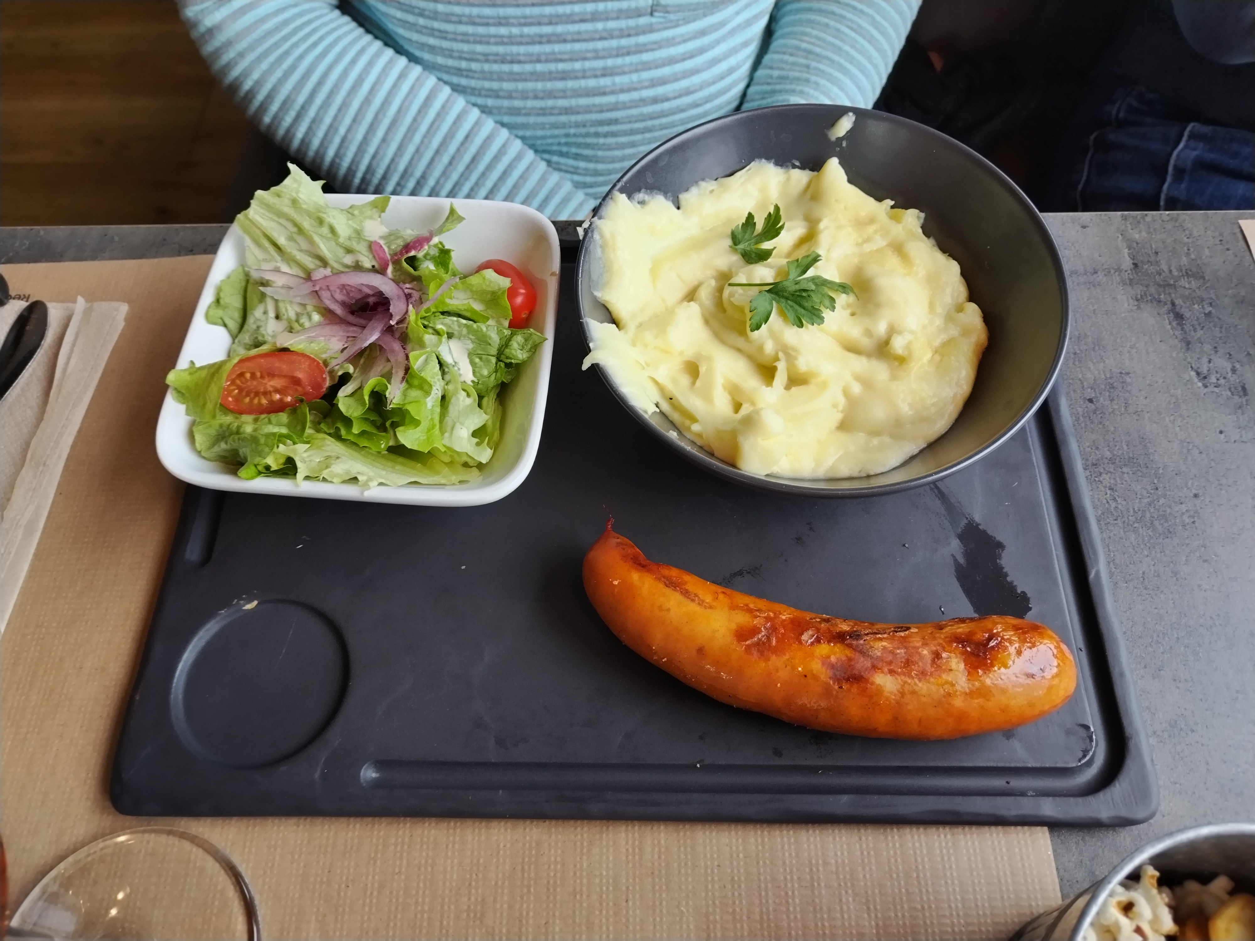 Immangeable, la salamandre à remplacé la friteuse pour les frites. Une calamité. Les carottes dans la salade sortent d'une boite métal, le pain est qualité supermarché et l'oeuf me semblait être sous vide déjà cuit. Bien longtemps que je n'ai pas aussi mal mangé.