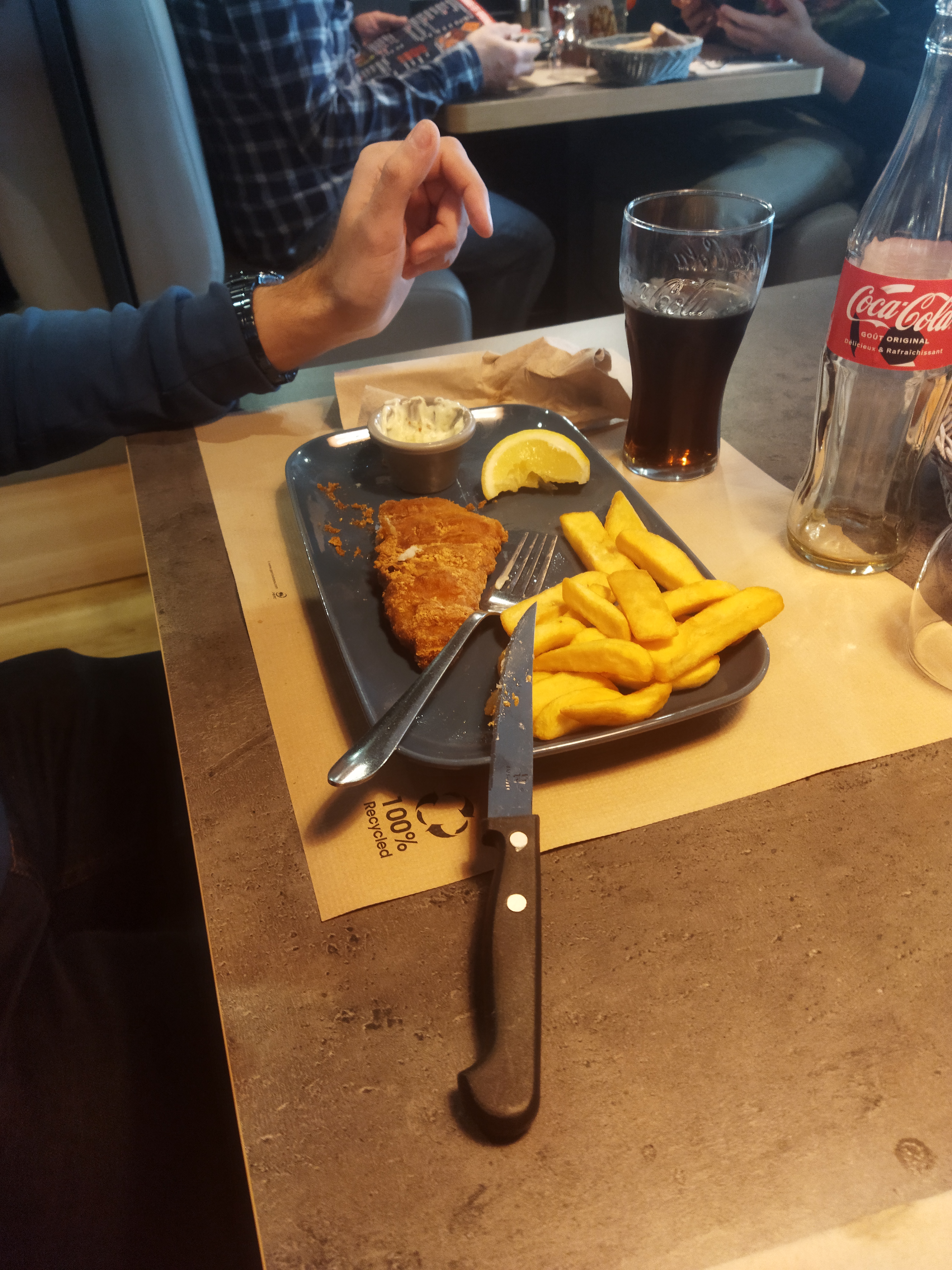 Un bon accueil et de bon plats. Le service est rapide en tenant compte du monde présent le jour de notre passage. Un fichier and chips au top. Je le recommande lors de votre passage à Monceau Les Mines