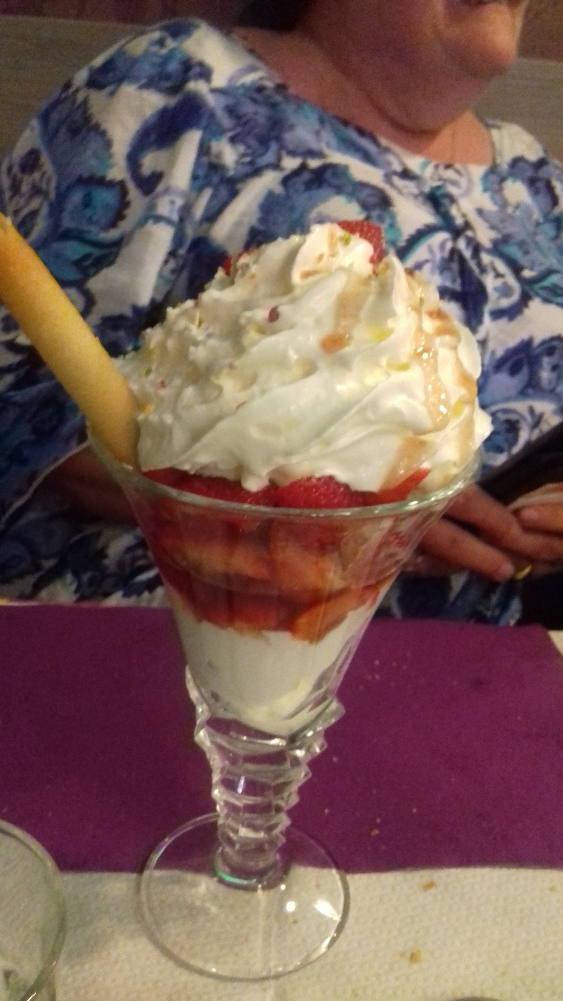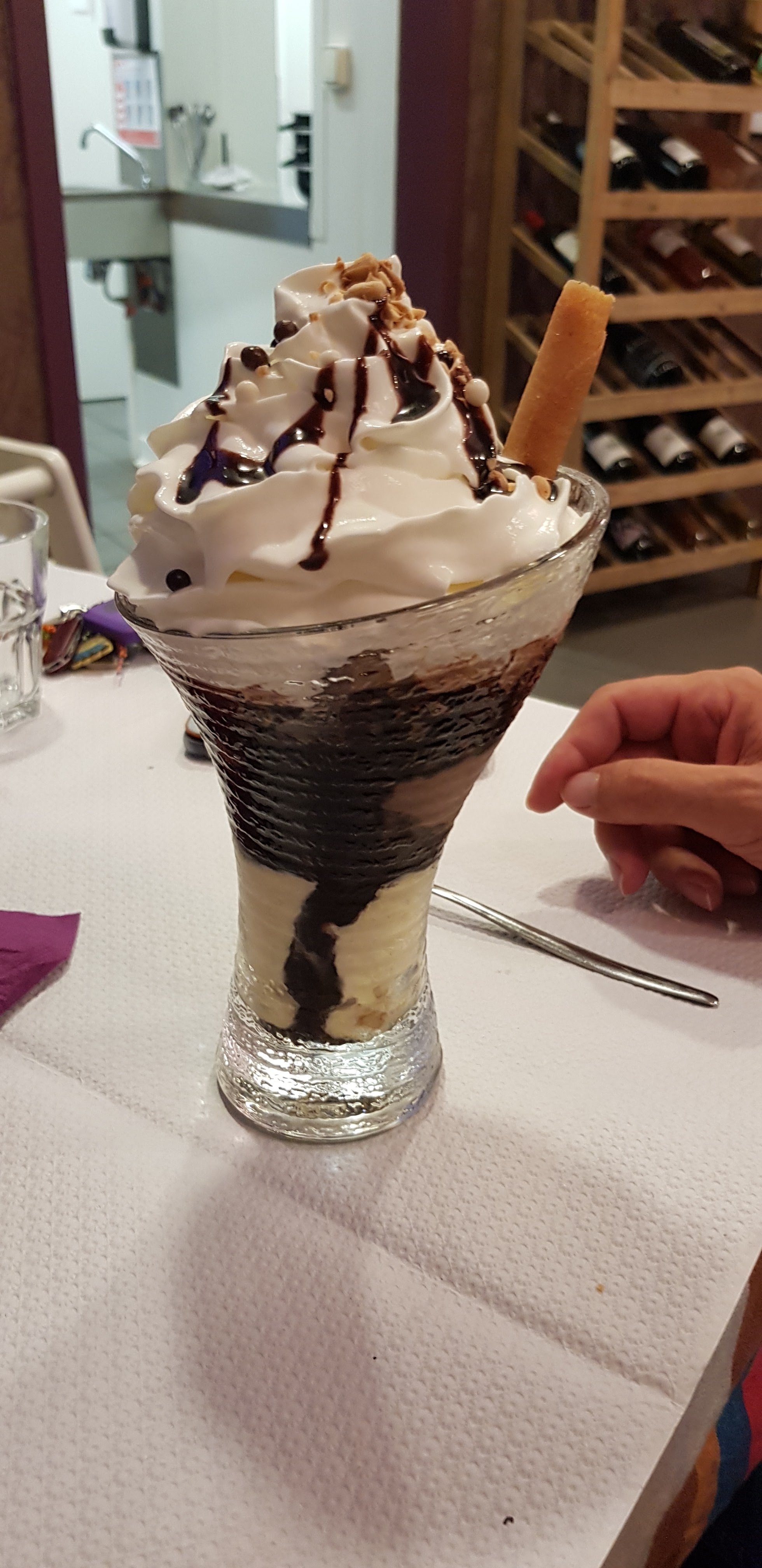Déçue par mes moules frites, pas très bien cuites. J ai été malade après. Dessert bien. Vin également. Mal tombée je pense.