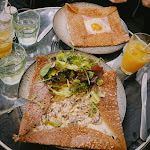 Pour se rassasier simplement et sans espoir de vraie bonne galette sarrasin ça fait l’affaire. Le lieu est tout à fait ok, le choix de galettes proposées très satisfaisant — surtout en tant que végétariens, des choix œuf/champignon/emmental ou œuf/épinard/emmental dans les galettes de base très appréciable d’autant que c’est rare — et abordable, 10€ pour ces deux là. Par contre elles se sont révélées fades, pas mauvaises mais manquant d’assaisonnement et avec une pâte qui ne ressemblait en rien à du sarrasin bien qu’on nous ait assuré que si : très jaunes et très fines on en a conclu que comme souvent, et quand elles sont “du jour même” comme nous l’a dit le patron, elles étaient a l’œuf. Ce même patron nous a répondu que non aussi, mais on ne l’a pas franchement cru… Sinon dommage pour le balsamique sur le mesclun (à 3,50€), on n’était pas censé.es manger de sucre ne ce moment et on a été prises au piège— en plus niveau goût ça cache tout, mais bon ça c’est une préférence personnelle. Sinon le service était un peu limite, pas désagréable mais un peu fouilli et on aurait apprécié.es d’être notifié.es dès notre arrivée de la panne de CB, plutôt d’attendre qu’on voit le panneau. Si on sait à quoi s’attendre, ça va !