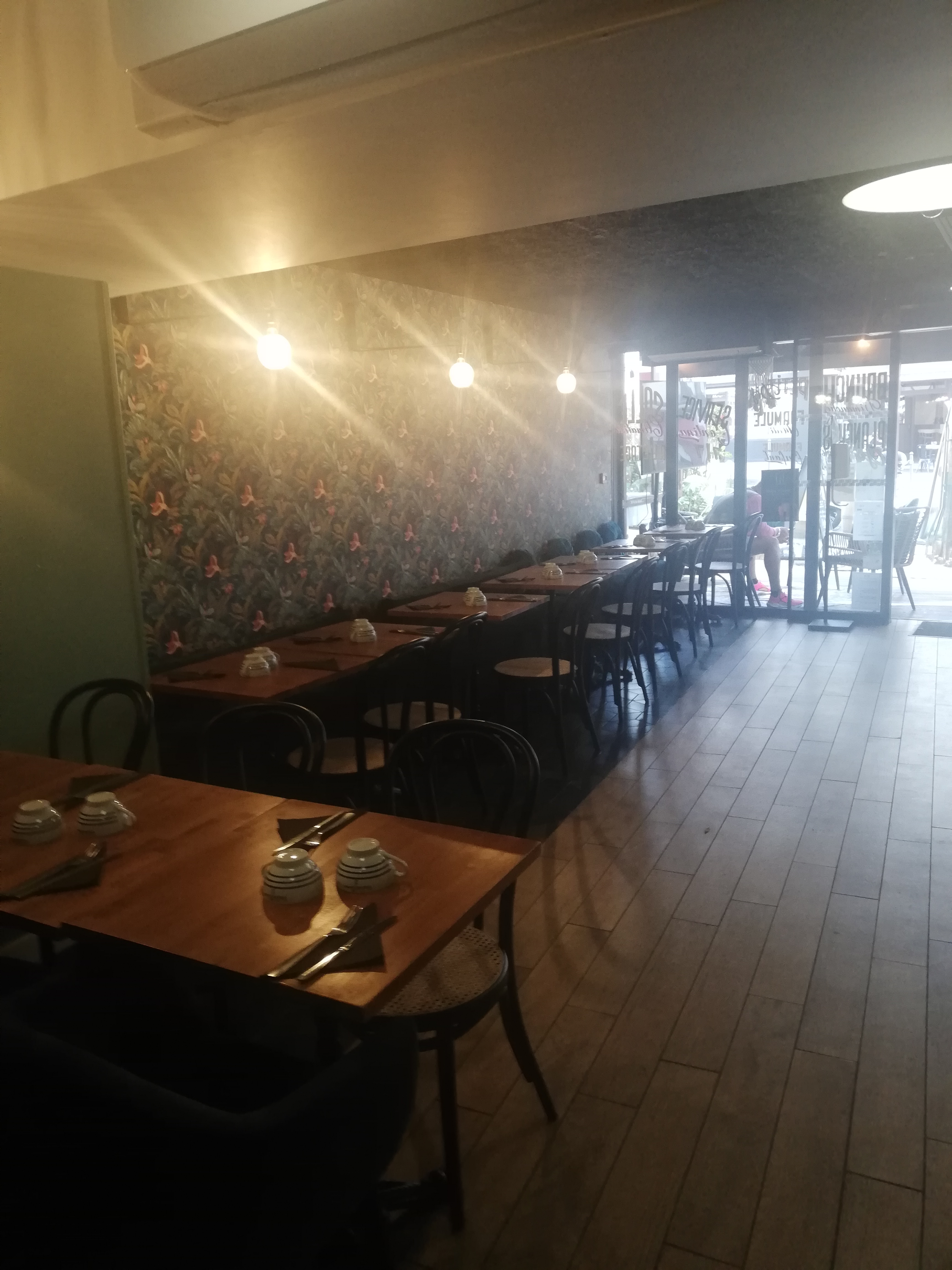 Je suis venue avec deux potes, nous avons mangé sur la terrasse, personnel charmant, patronne très accueillante, petit soucis ce jour cartes refuser, heureusement nous avions du liquide. 👌👌🔥🔥