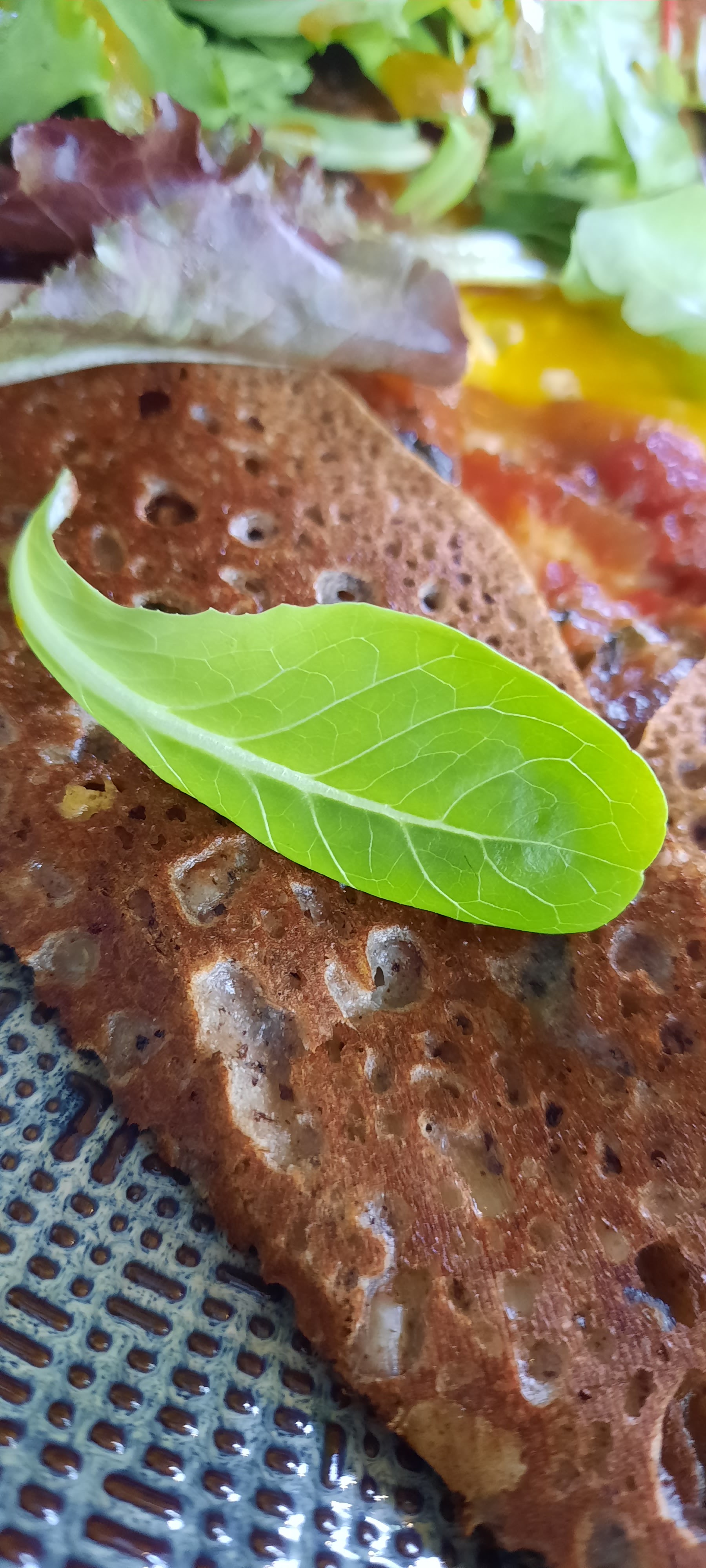 Très bonne crêpes et salades de jeunes pousses délicieuses en terrasse ou intérieur