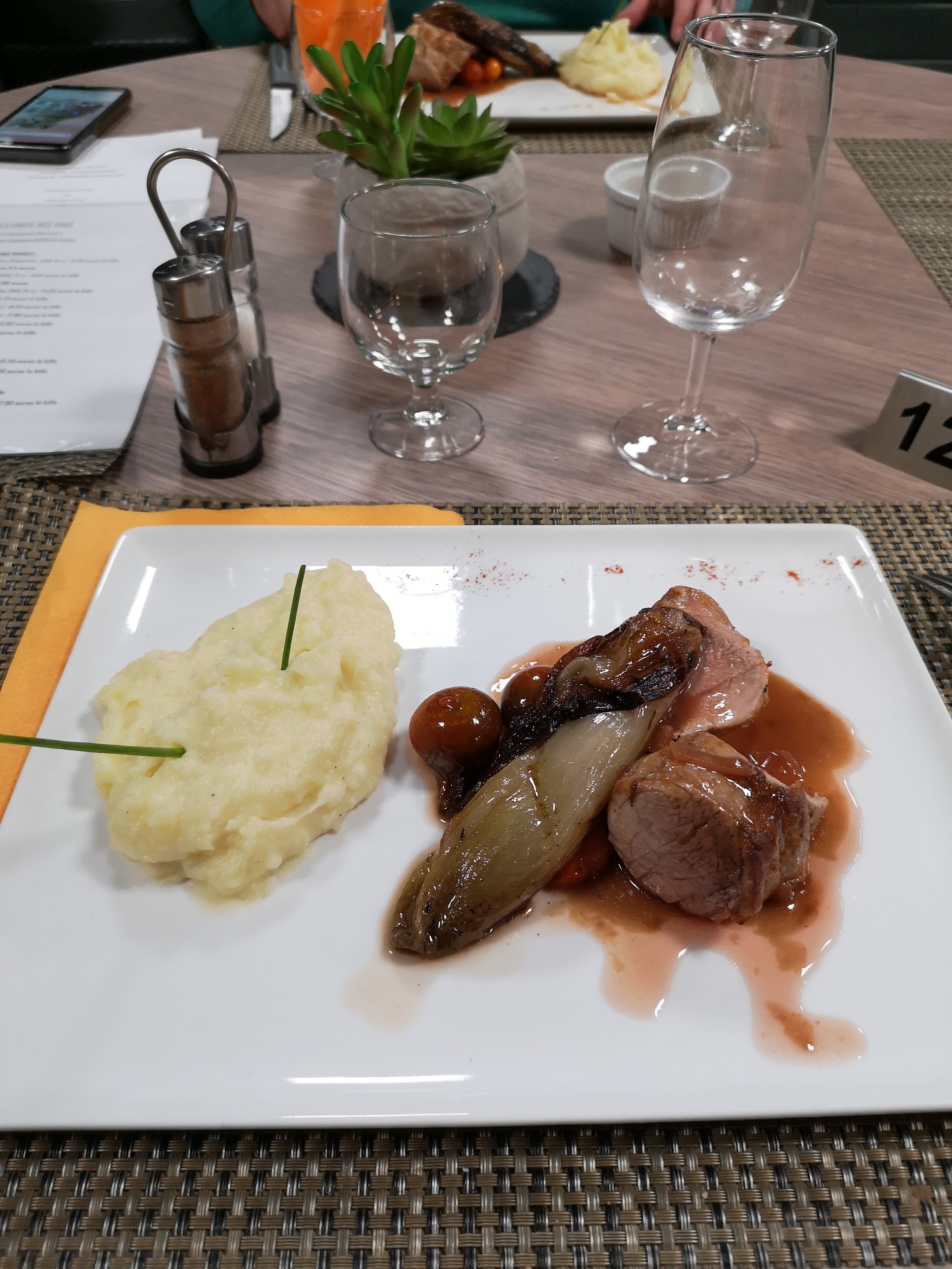 Très simple mais excellent ! Cuisson maitrisée, l'escalope fut très bien grillée, la tarte normande fut un régale !
