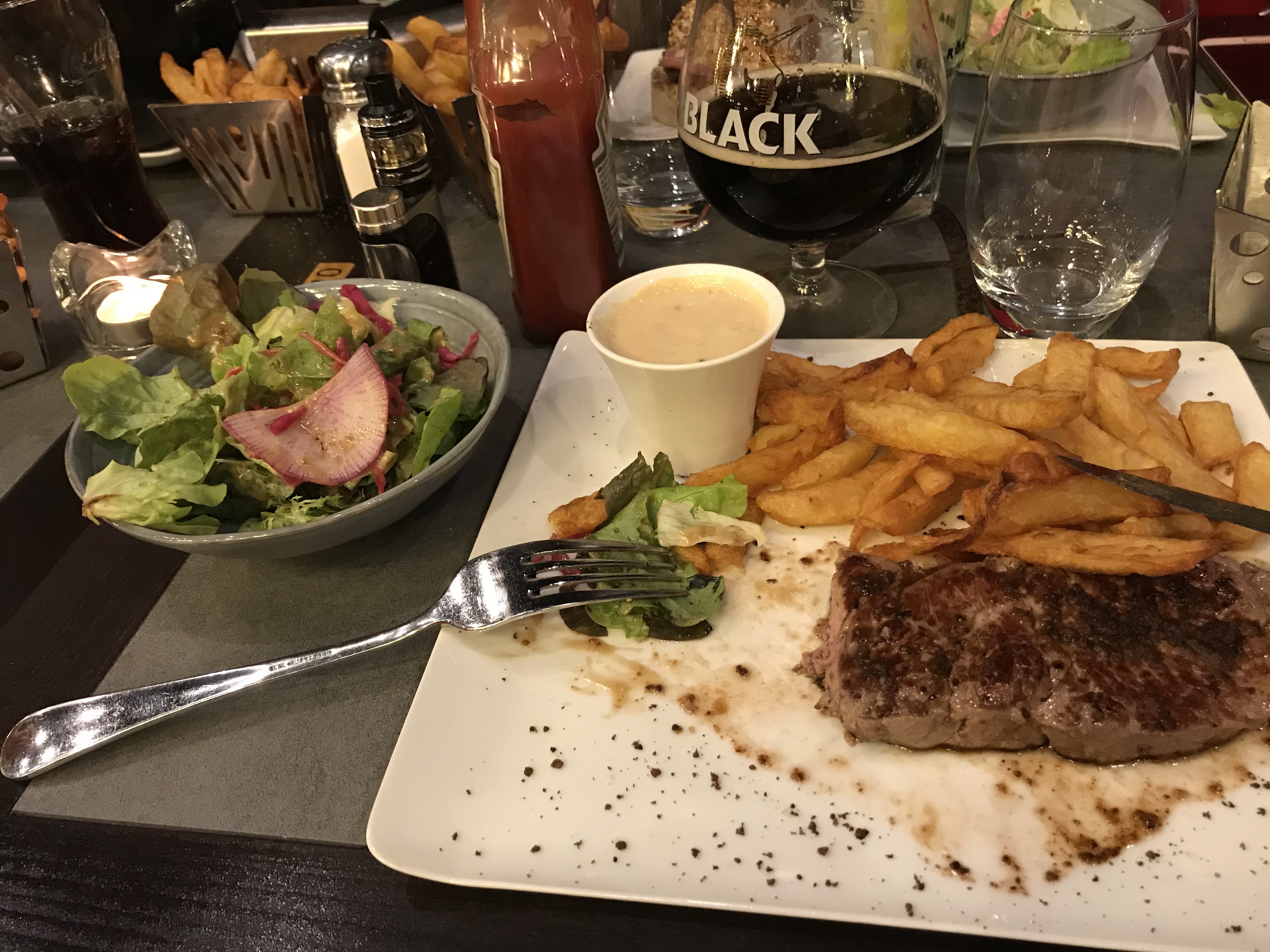 Excellent accueil avec un cadre très moderne. J ai trouvé que l'entré était copieux et de très bonne qualité Au plat de résistance la viande a été cuite parfaitement selon les demandes souhaité Au dessert était parfait avec le café Au niveau qualité prix c'est très bien Je conseille fortement de faire un tour pour passer un super repas.