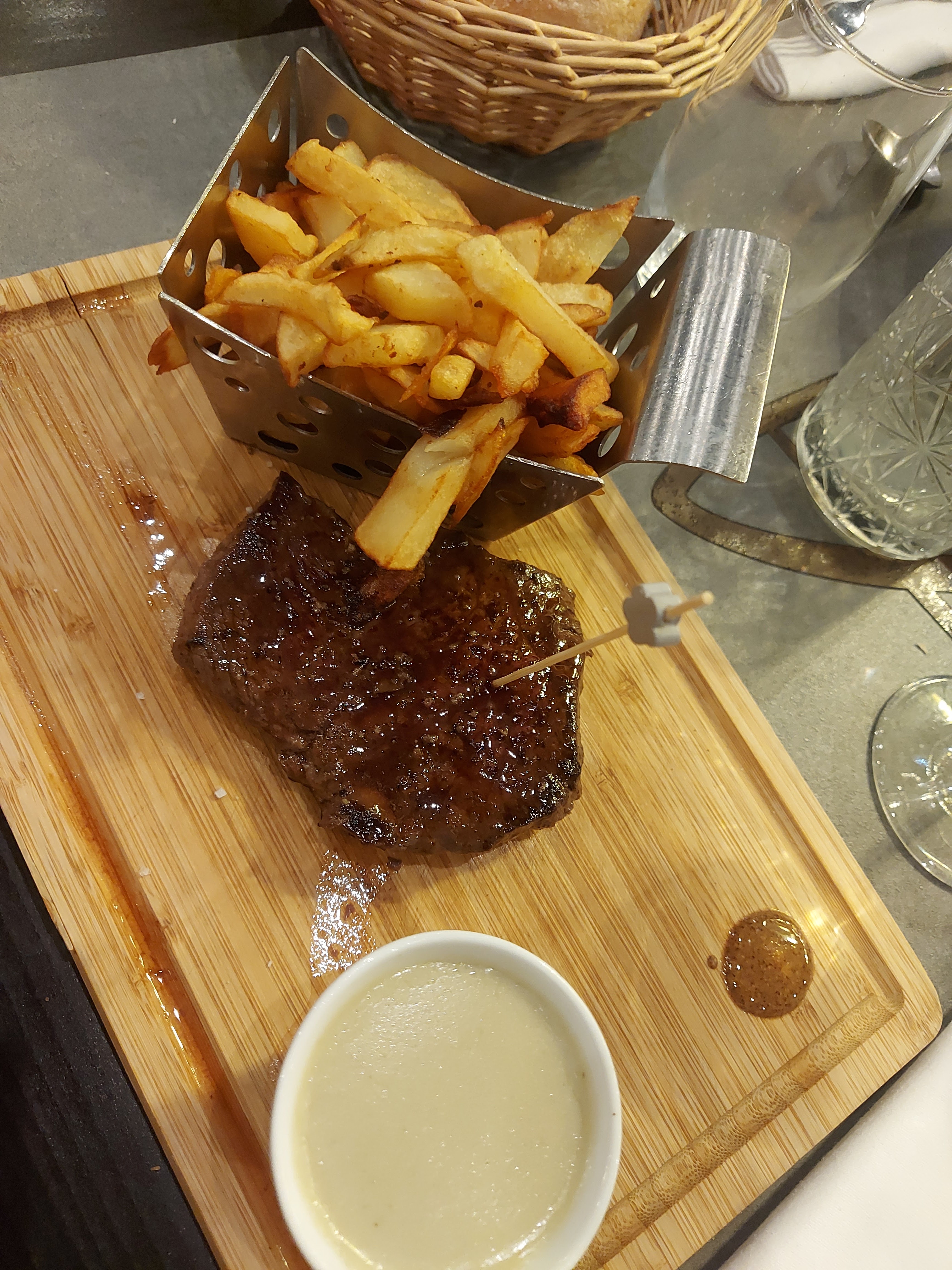 Nous avons déjeuné à la brasserie aujourd’hui, nous étions pressés, le timing a été respecté, et nous avons apprécié nos plats à la carte : filet de dorade et steak de thon , le tout avec le sourire