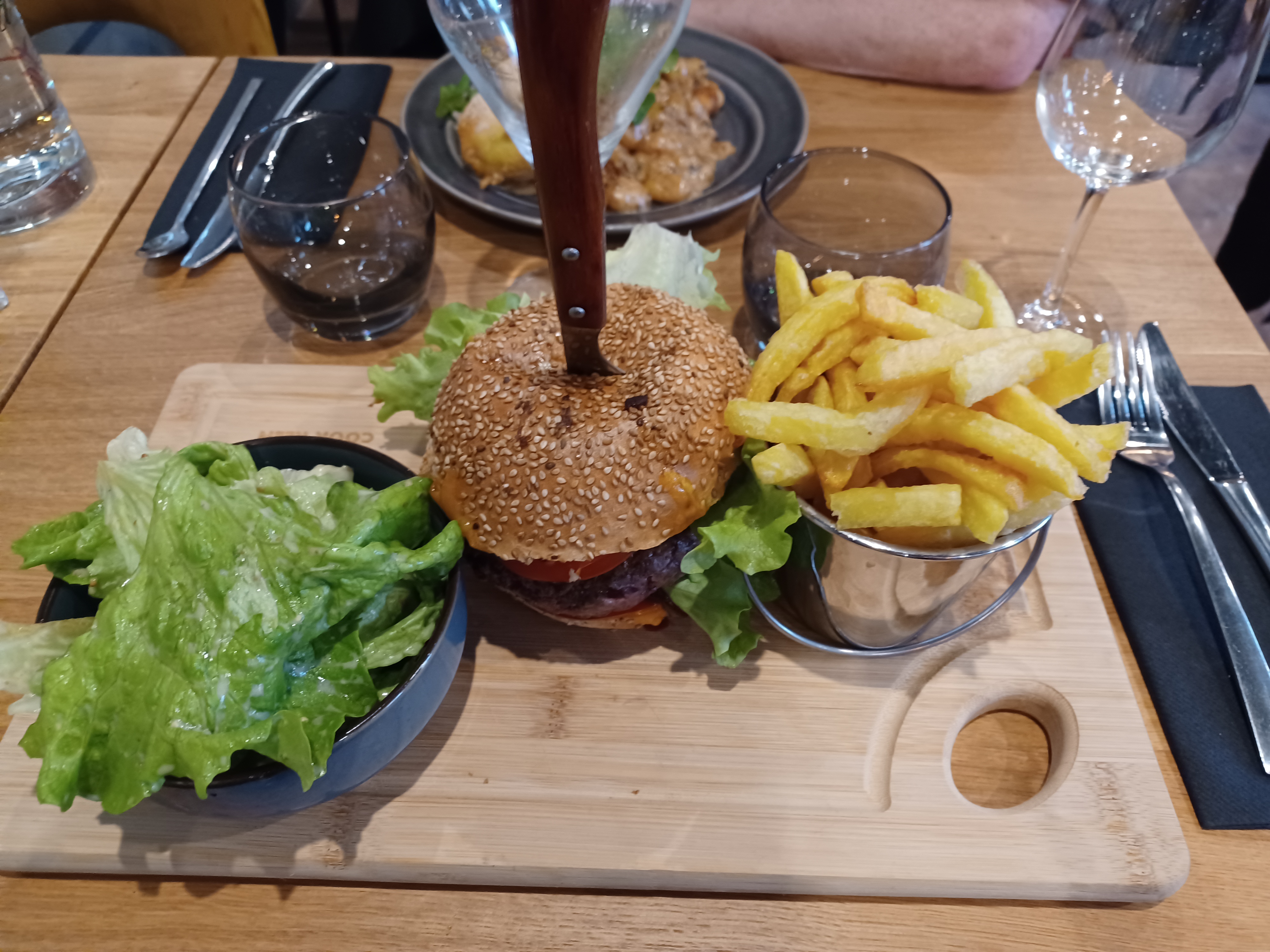Ambiance chaleureuse. Serveurs agréables. Burger très bon et copieux. Prix un peu chers surtout les desserts, mais ce sont les prix du coin globalement... Je reviendrai tester les autres plats sans hésiter. Menu affaire à 21,50€ le midi avec plat et dessert qui vaut sûrement le coup (non testé ce jour).