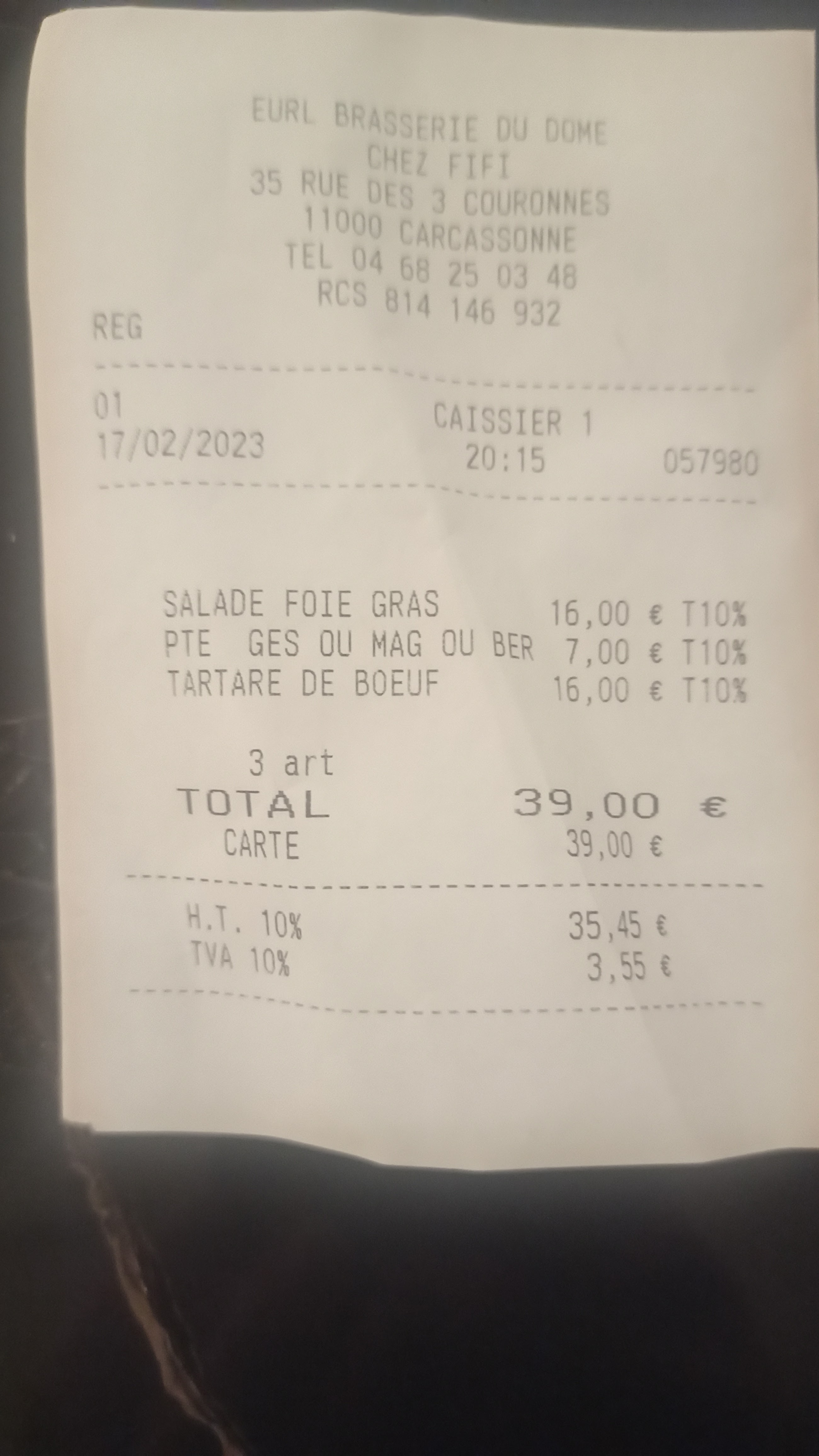 La Brasserie du Dôme est une très bonne adresse pour manger en menu, ils en proposent deux à bon prix, la qualité est bonne et la cuisine comme le service à table sont plus que corrects. Un autre point en leur faveur concerne leurs horaires de cuisine. Ma femme et mes enfants mangeaient le 26/05/2018 et nous avons été ravis. Le service de la serveuse était excellent et la nourriture était la même. Si vous cherchez un endroit pour manger à Carcassonne hors les murs, n'hésitez pas, c'est un bon restaurant.