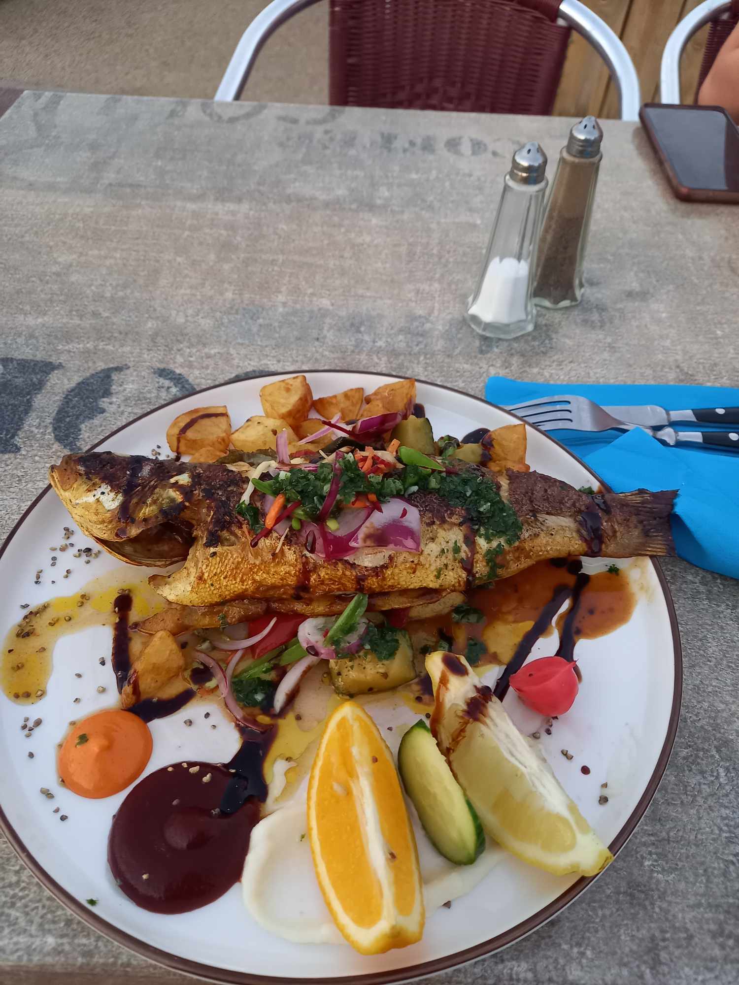 Très bien mangé ! Le poisson entier excellent et les salades Caribeenne un délice ! Un moment en famille agréable en cette belle journée !