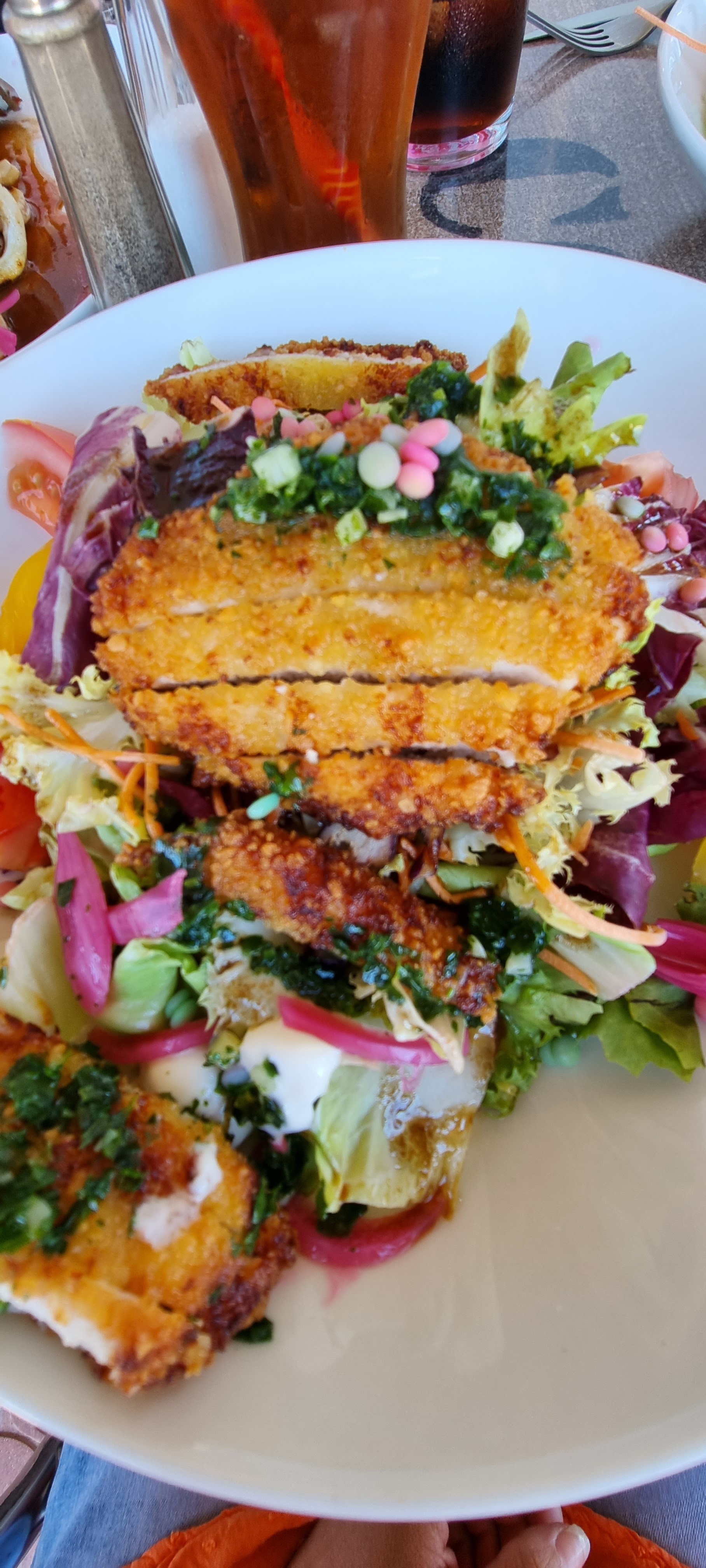 Petite pause repas midi qui n'était pas prévue et bien pas déçu ,petite salade poulet croustillant très bonne ,copieuse, service rien à dire donc parfait je conseil .