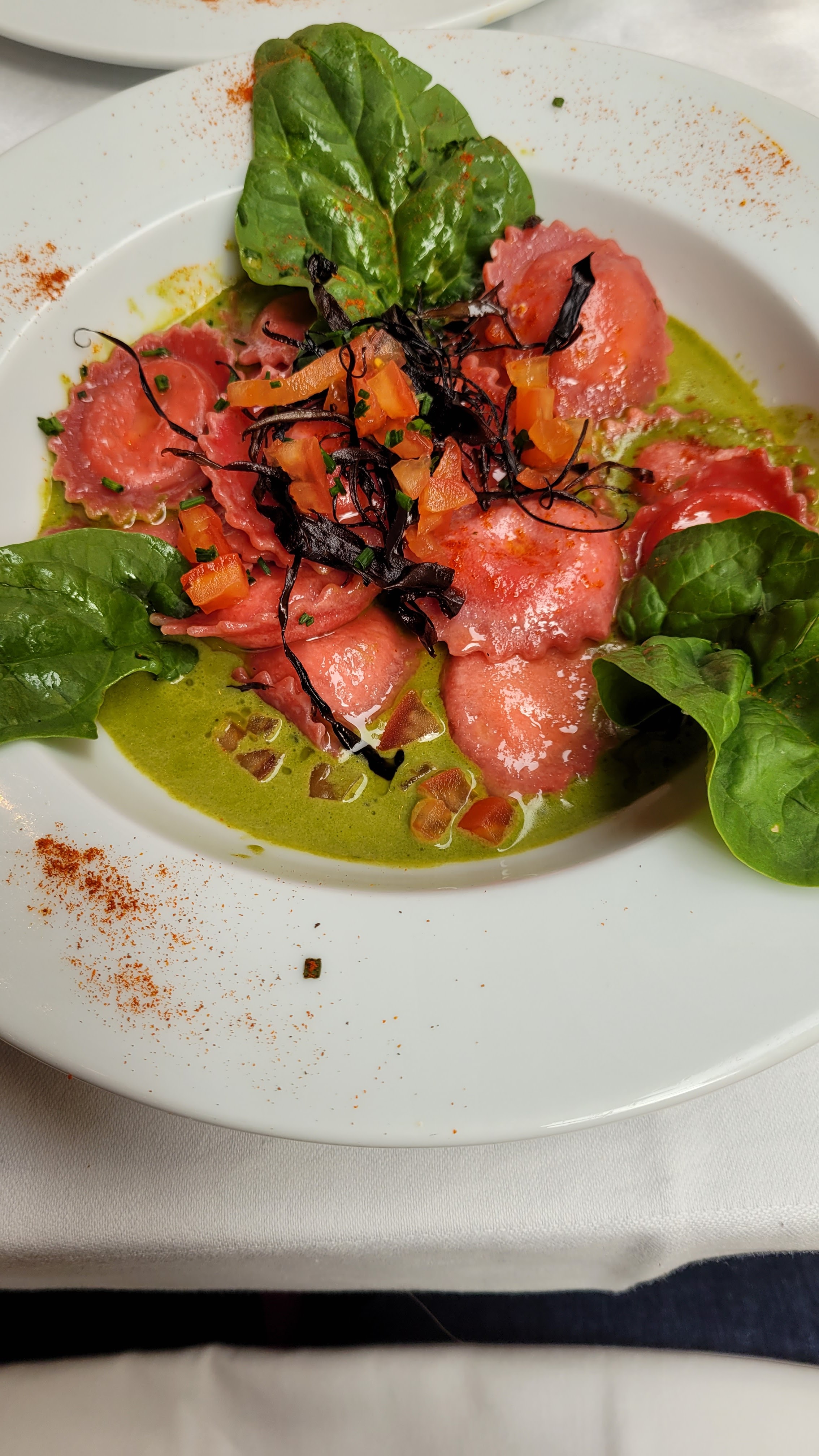 Très bon accueil, un serveur/patron (?) au petit soin, on se croirait dans une brasserie parisienne, excellente sensation. Des plats beaux à l’œil, bons aux papilles ! De la créativité oralement avec les ravioli du moment ;) Un service impeccable, des serviettes en tissu !!! Quel plaisir Les prix sont un peu élevés mais pour la qualité et le service nous avons trouvé que c’était justifié. Quand sur le port vous mangez des plats de piètres qualités pour quelques dizaine d’€ en moins sans vous sentir accueilli... Autant ne pas aller souvent au resto mais aller pour être satisfait, non ? Bref nous étions 3 et avons pris 2 entrées, 3 plats, 3 desserts dont un cadeau, café, un jus et une bouteille de vin, 132€ Nous recommandons vivement !