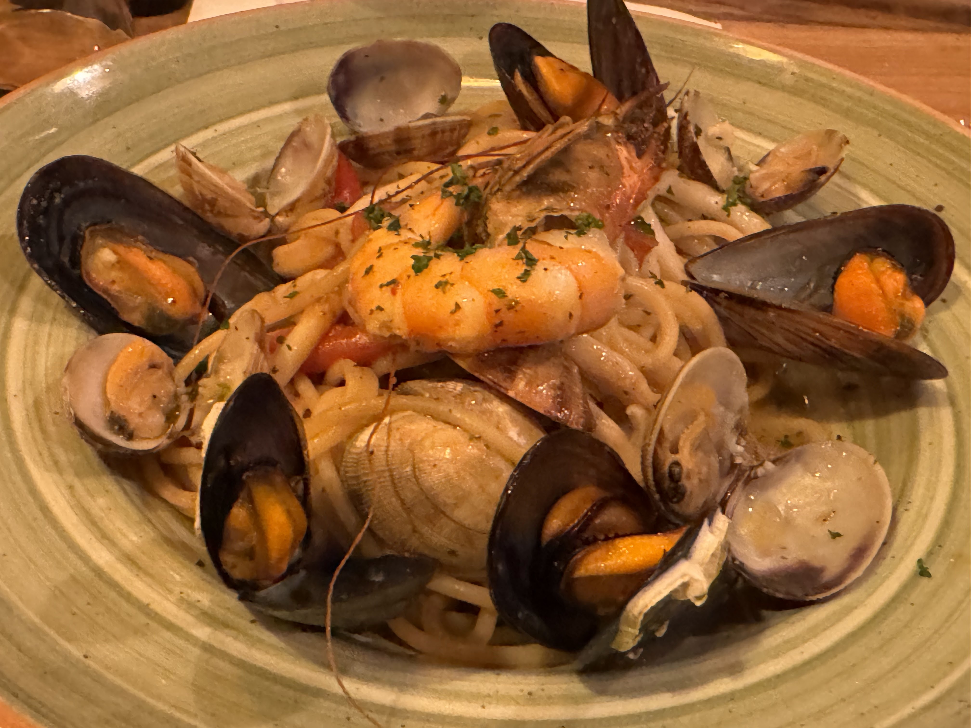 Les pates et la pizza vegetarienne étaient horribles Les pates soit disant aux moules pas cuites et n’a aucun goût .. et la pizza avec sa sauce tomate qui coulait de partout impossible de la découper et manger impossible !! le serveur italien nous a mis mal à l’aise ma soeur et moi , ainsi que la serveuse qui faisait semblant de ne pas comprendre ( le français ni l anglais ) On a commandé depuis la carte du jour ( tableau affiché dehors ) mais on nous a fais payé un montant plus cher ( celui mentionné sur la carte normale ) voilà très mauvaise expérience . A ne jamais refaire .