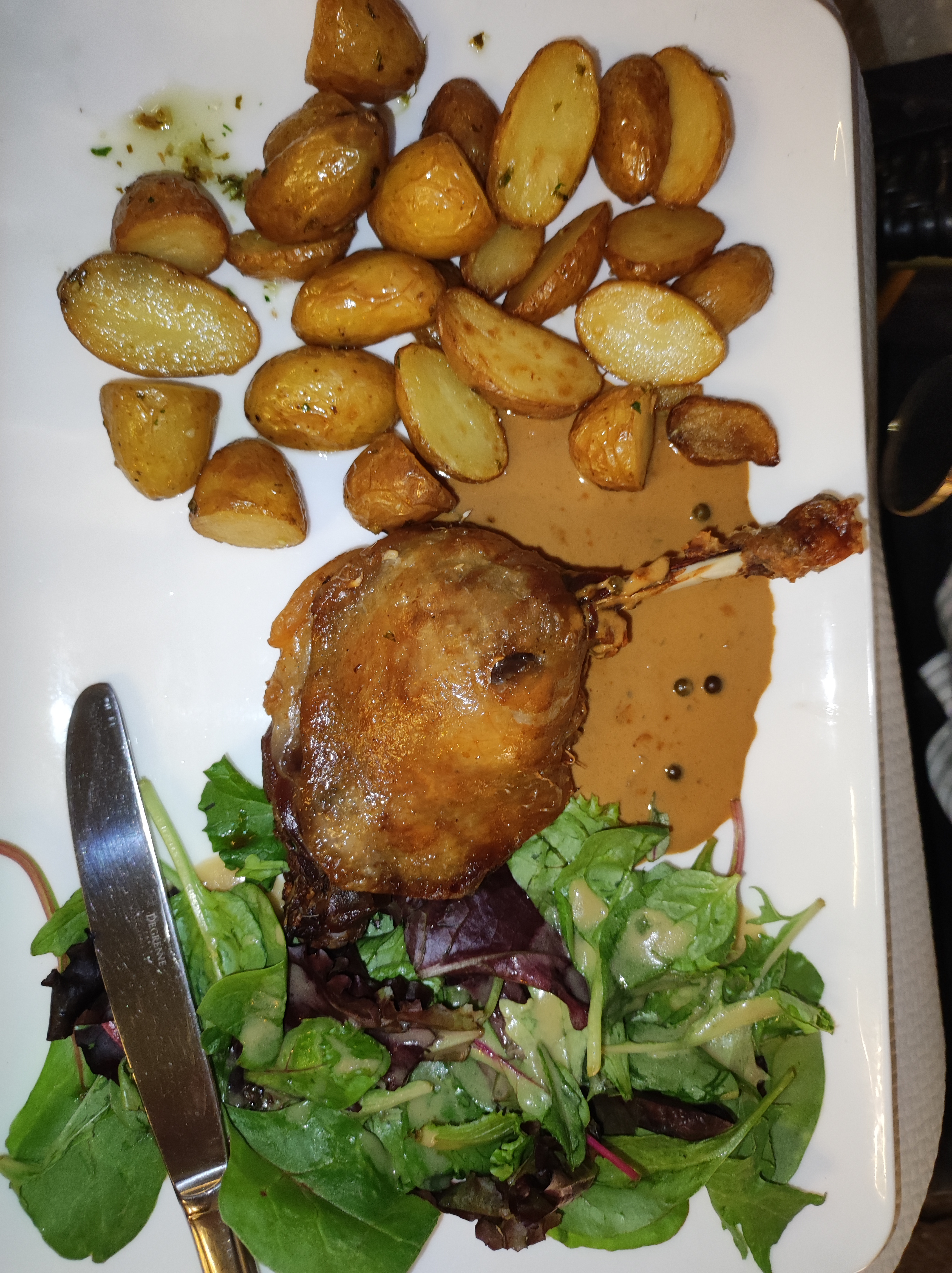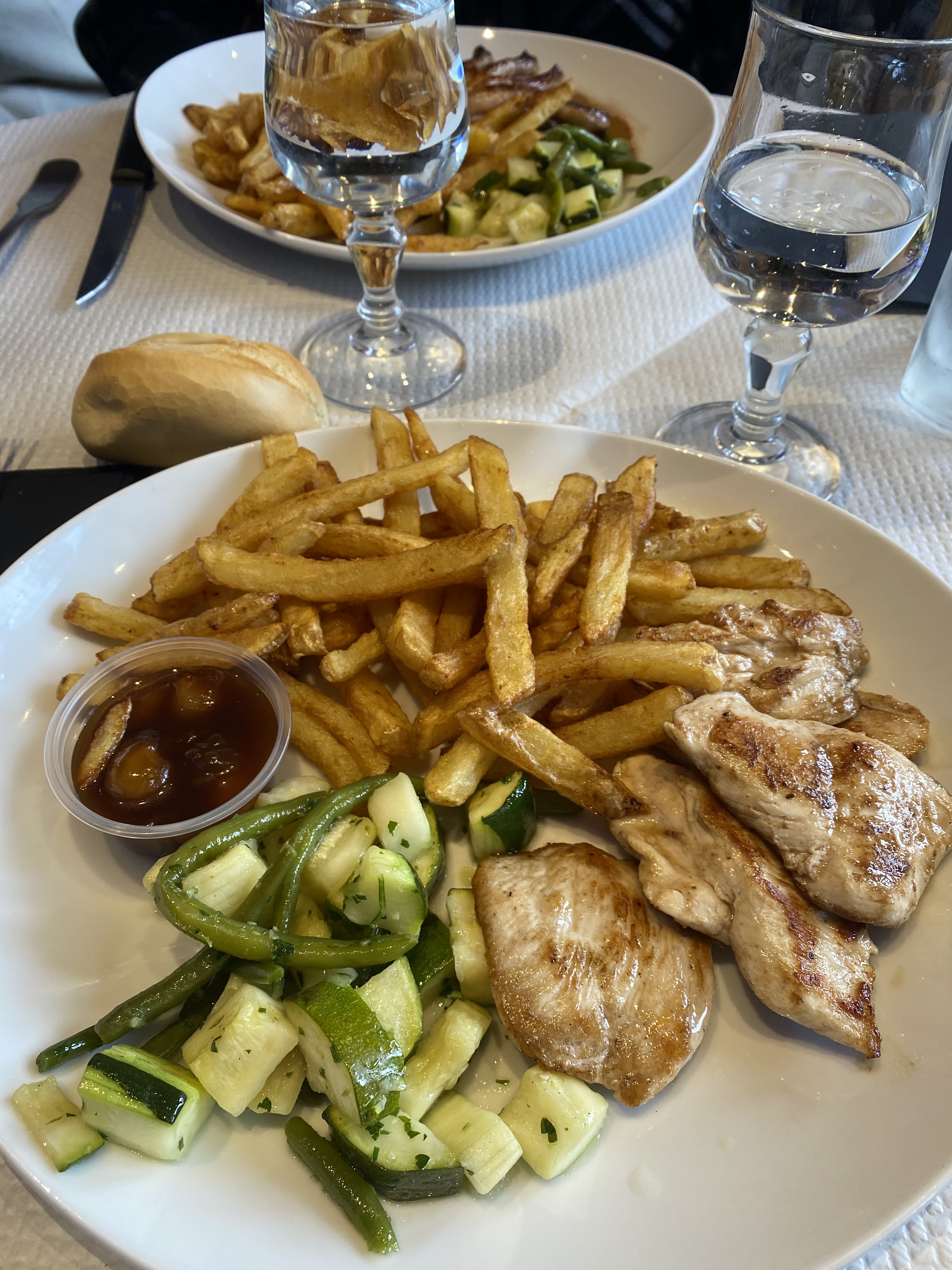 Un moment délicieux dans tous les sens du terme, bonne ambiance, serveuses et serveurs très sympathiques, à l’écoute de nos besoins et soucieux de savoir si notre repas nous avait plu. Pour ma part comme je sais que les portions sont généreuses j’ai pris en tapas, le trio de nems végétariens avec sa petite salade bien assaisonnée et les amies le filet de poulet sauce petits oignons/salade et assiette de frites, tout est fait maison avec des produits frais. Je recommande vivement cette brasserie. Désolé pour les photos j’en prendrais au mois de juin.