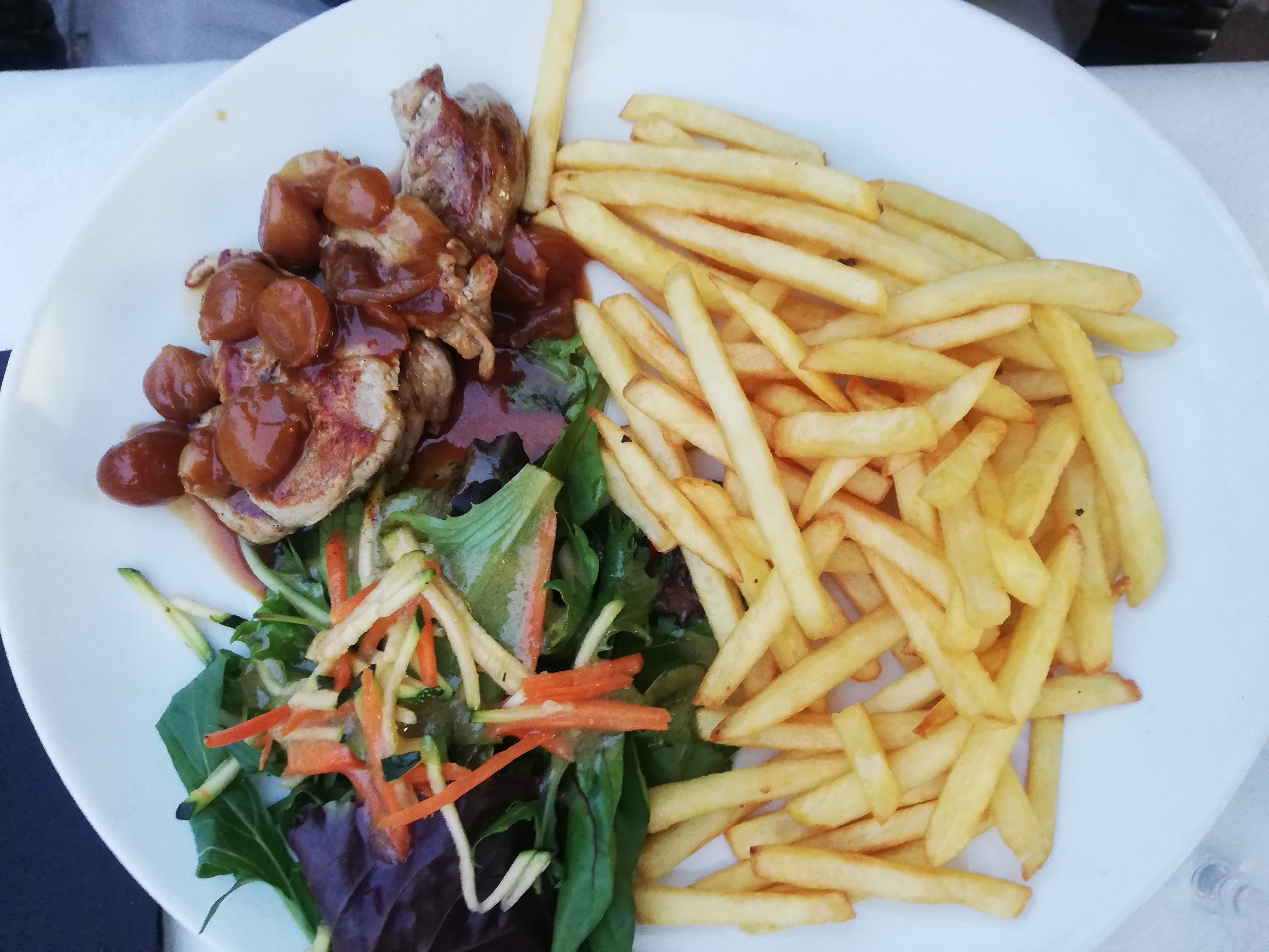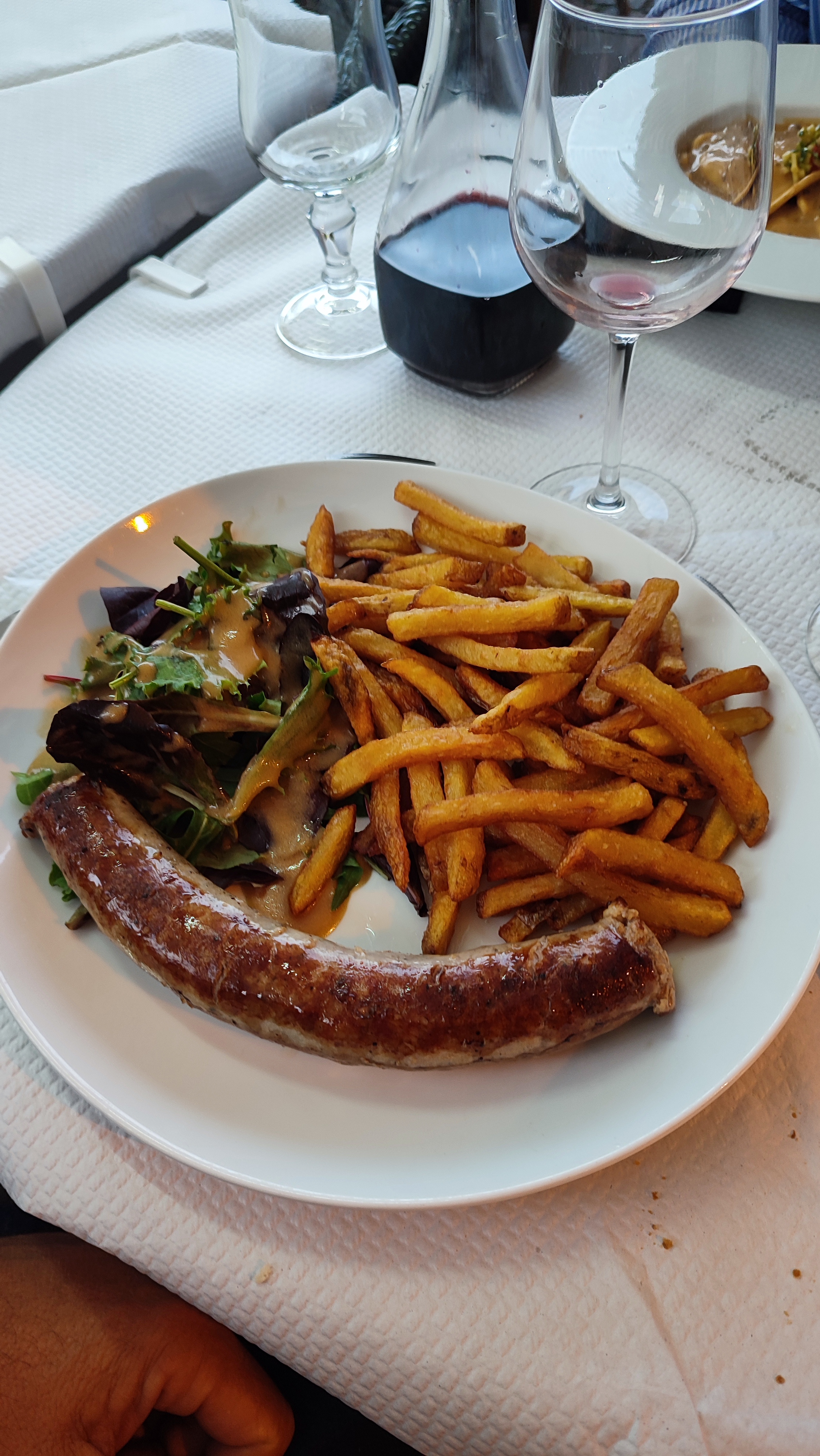 Nous avons commandé la saucisse de Toulouse très bonne et les moules frites un peu moins ( pas assez chaudes ). Malheureusement le déjeuner a été interrompu par de nombreuses bêtes ( abeilles, mouches….). Nous comprenons que ce soit naturel. Néanmoins, les serveurs n’ont pas aidé à nous placer à l’intérieur ni même daigner comprendre la situation sachant que je suis allergique aux piqûres d’abeilles. Nous avons donc voulu partir et payer l’addition et avons attendu pendant plusieurs minutes avant d’aller chercher un serveur. Celui-ci m’a remballé à ma table en me disant d’attendre. Vraiment une mauvaise expérience qui a gâché tout le plat. Très déçue !