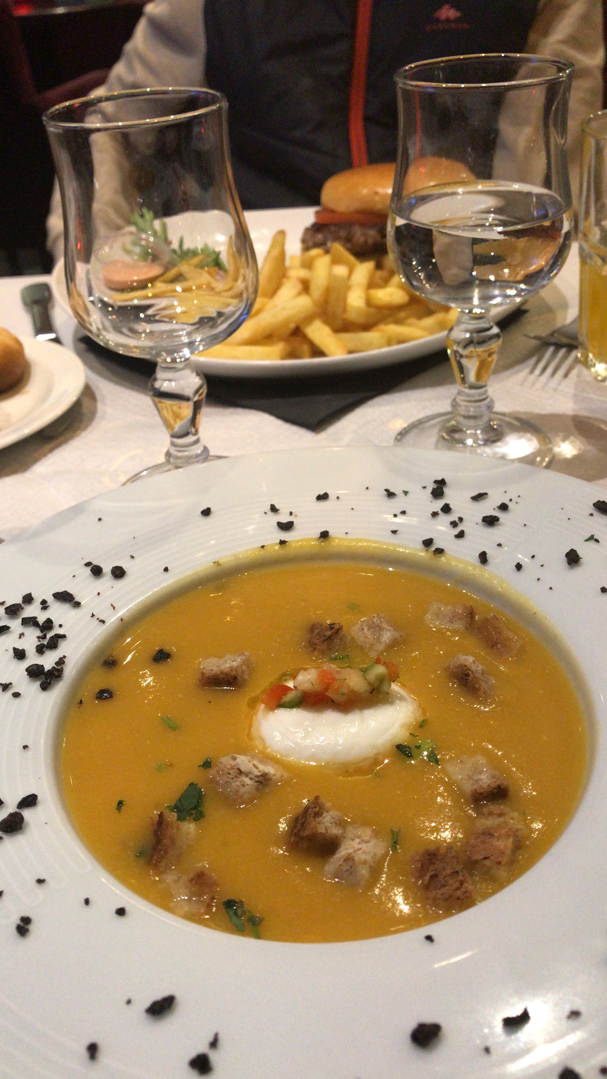 Bonne adresse , sauf 2 choses... 1 Malheureusement les frites sont vraiment pas bonnes malgré une cuisine superbe en goût et en couleur !!! Les plats sont excellent mais malheureusement ce petit bémol gâche le plat. Ensuite ce jour la le service fût très moyen , une serveuse en particulier . heureusement un serveur à fini notre commande avec sourire malgré le masque bonne humeur et une personne experte dans son travail. Photo 1 foie de veau ( excellent) frite (beurk) Photo 2 soupe potimarron et oeuf poché (parfait)