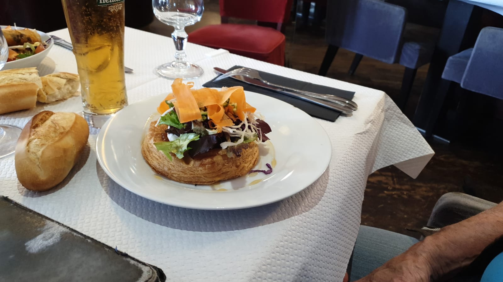 Pain surgelé de mauvaise qualité, dommage en France le pain c'est une bonne tradition, restaurant saturé, trop d'attente + d'une heure d'attente entre l'entrée et le plat. Les serveurs ne savent plus où donner de la tête, le cuistot non plus visiblement. Quand on n'est pas en mesure d'accomplir la prestation dans un délai décent, on prévient ou on refuse les clients. Bon emplacement.