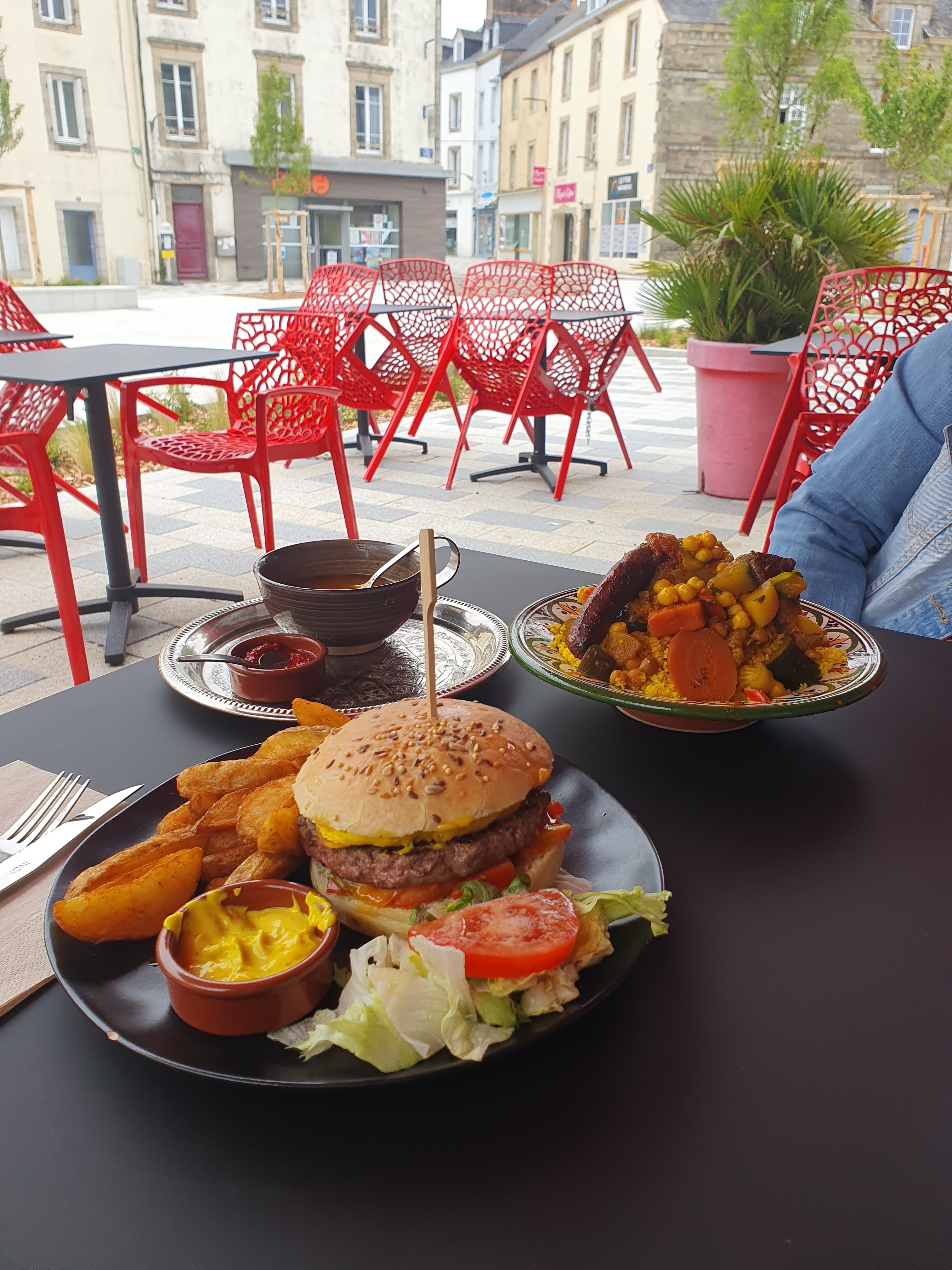 Si il y a un endroit sympathique à Carhaix c'est celui ci. Une jolie terrasse vous attend au pied de la mairie. L'accueil est plus que sympathique un des serveurs à vraiment beaucoup d'humour. On y sert entre du couscous et franchement on s'y ai régalé en passant un très bon moment. 👍