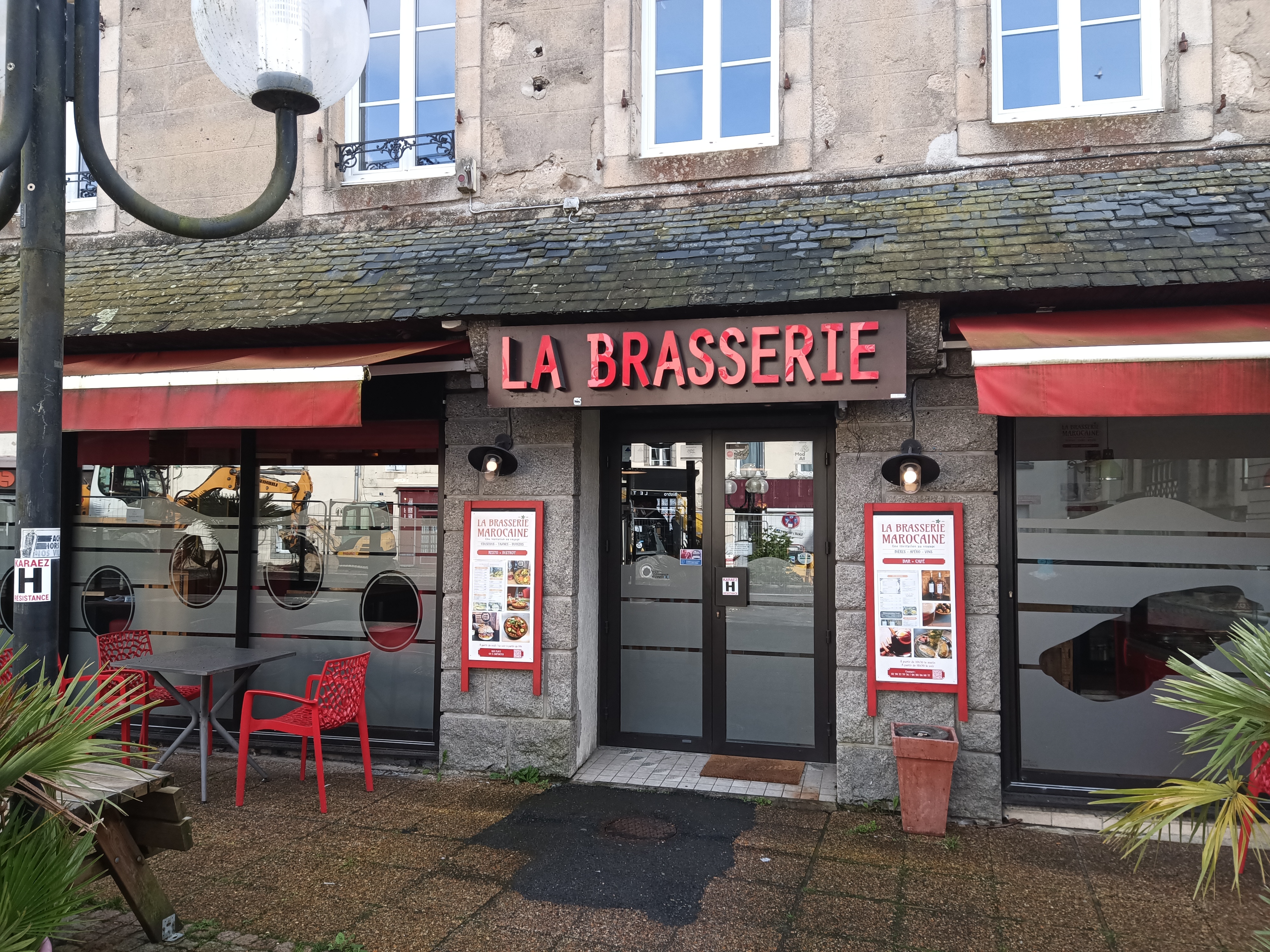 Après une agréable journée de retrouvaille avec nos amis bretons nous sommes partis à la recherche d'un restaurant dans les environs de Carhaix-Plouguer. Quelle ne fut pas notre surprise de découvrir qu'un samedi en fin d'après-midi pendant la période estivale (18h00) la plupart des magasins et des restaurants étaient fermés. Après plusieurs échecs et plus d'une heure de recherche infructueuse nous franchissons l'entrée de La Brasserie Marocaine. Nous demandons au Chef s'ils ont des places de disponibles pour deux couples et leurs enfants, ce dernier nous répond poliment qu'ils sont complets. Nous ressortons donc sous la pluie et recherchons à nouveau sur nos téléphone portables. La patronne revient nous voir et nous dis qu'elle peut nous accueillir à condition que nous soyons partis dans 45 minutes car un groupe va arriver. Nous avons accepté avec gratitude et avons été installé dans une alcôve à cet effet. Malgré les circonstances l'équipe s'est montré aux petits soins avec nous, le chef nous a fait rire avec son humour désopilant! Après le passage de notre commande la patronne est venue avec un large sourire nous signaler que nous pouvions prendre notre temps car le groupe prévu aurait de retard :-) Nous avons donc passer un excellent moment sur place et tous les plats étaient somptueux! Nos amis (revenant de leur premier séjour au Maroc) et nous étions unanimes, ce furent les meilleurs couscous et tajines que nous n'ayons jamais mangés! Une mention spécial pour les merguez, elles sont incroyables! Et le bouillon...une pure merveille! Bref nous recommandons chaleureusement La brasserie Marocaine, pas seulement pour le plaisir des papilles mais aussi pour la gentillesse de la patronne et l'humour du chef! Au plaisir de vous revoir!