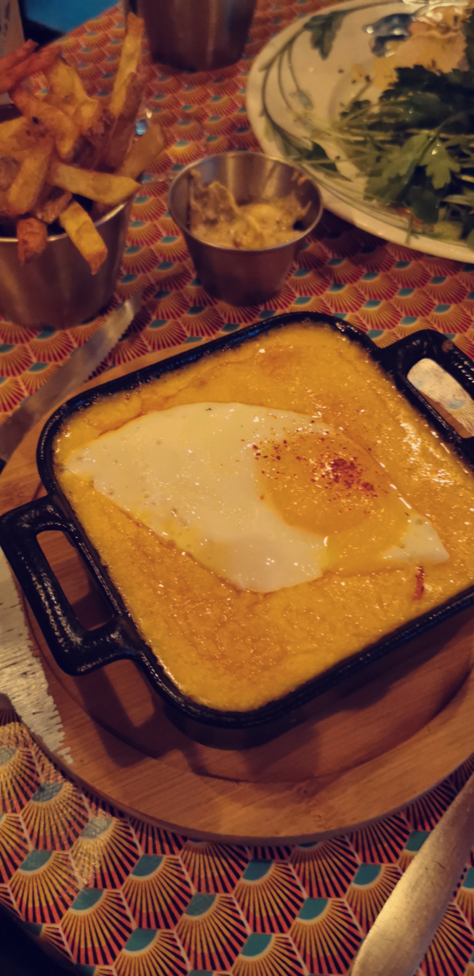 Bon welsh, mais là proportion pain / jambon face au fromage était trop faible. Frites délicieuses Accueil des serveurs top, même si ils se sont fait pourrir en direct face à la clientèle. Ça jette un froid niveau ambiance en salle 🥶